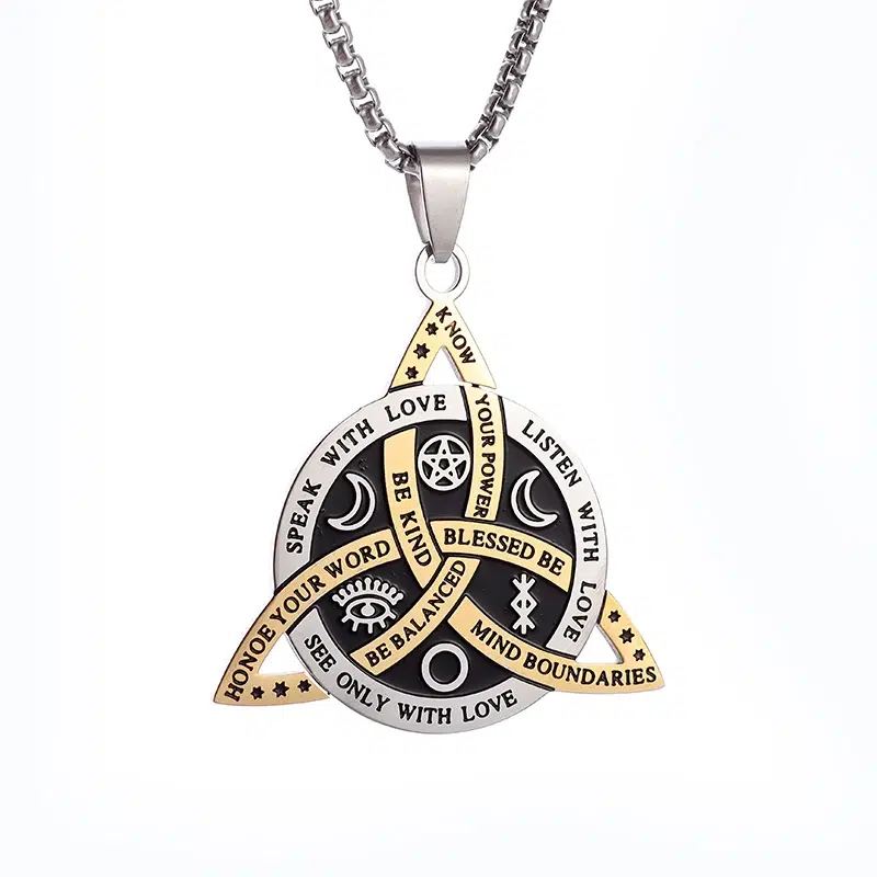 Ce symbole, fusion de puissance spirituelle et d’élégance, représente l’essence même de la tradition Wiccan. Qu’il soit porté comme témoignage de foi, comme talisman de protection ou comme outil sacré dans les cérémonies, ce bijou illustre les valeurs d’unité, de préservation et d’immortalité.