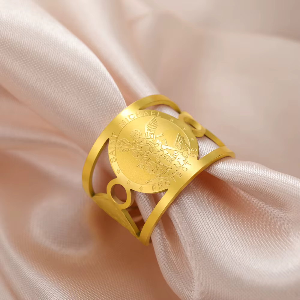 La bague réglable de Saint Michel est associée à une forte symbolique de protection. Elle incarne la présence bienveillante de l’archange, perçu comme un gardien spirituel veillant sur celui qui la porte.