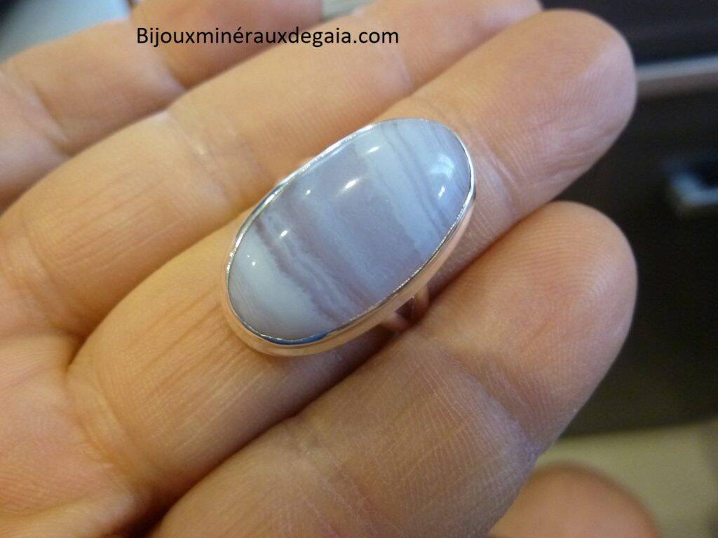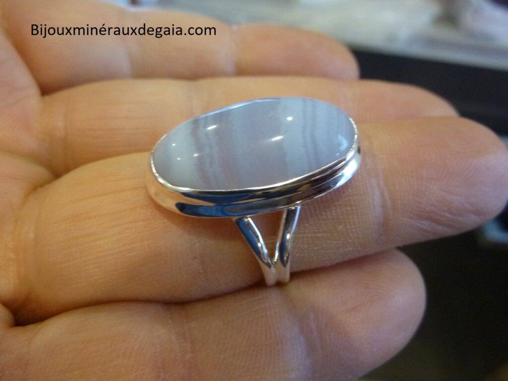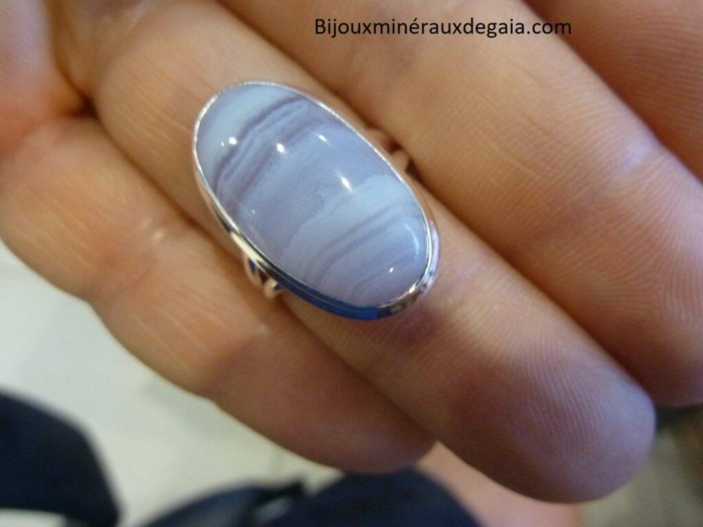 Bague calcédoine bleu monture argent 925 taille 57 3/4 ref 5433