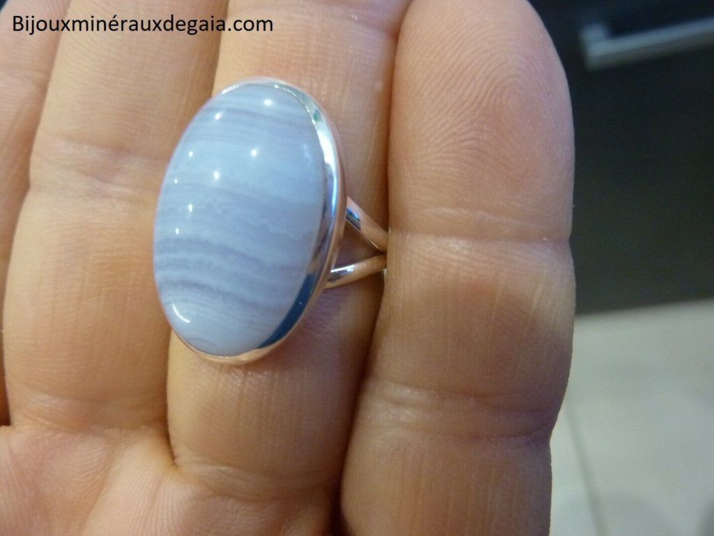 Bague calcédoine bleu monture argent 925 taille 58 3/4 ref 1721