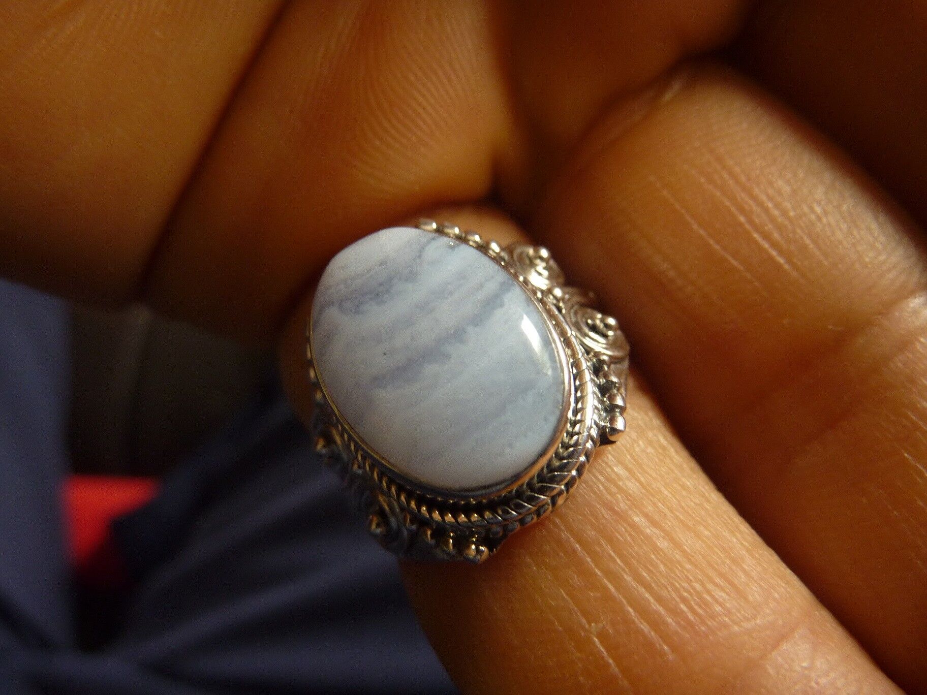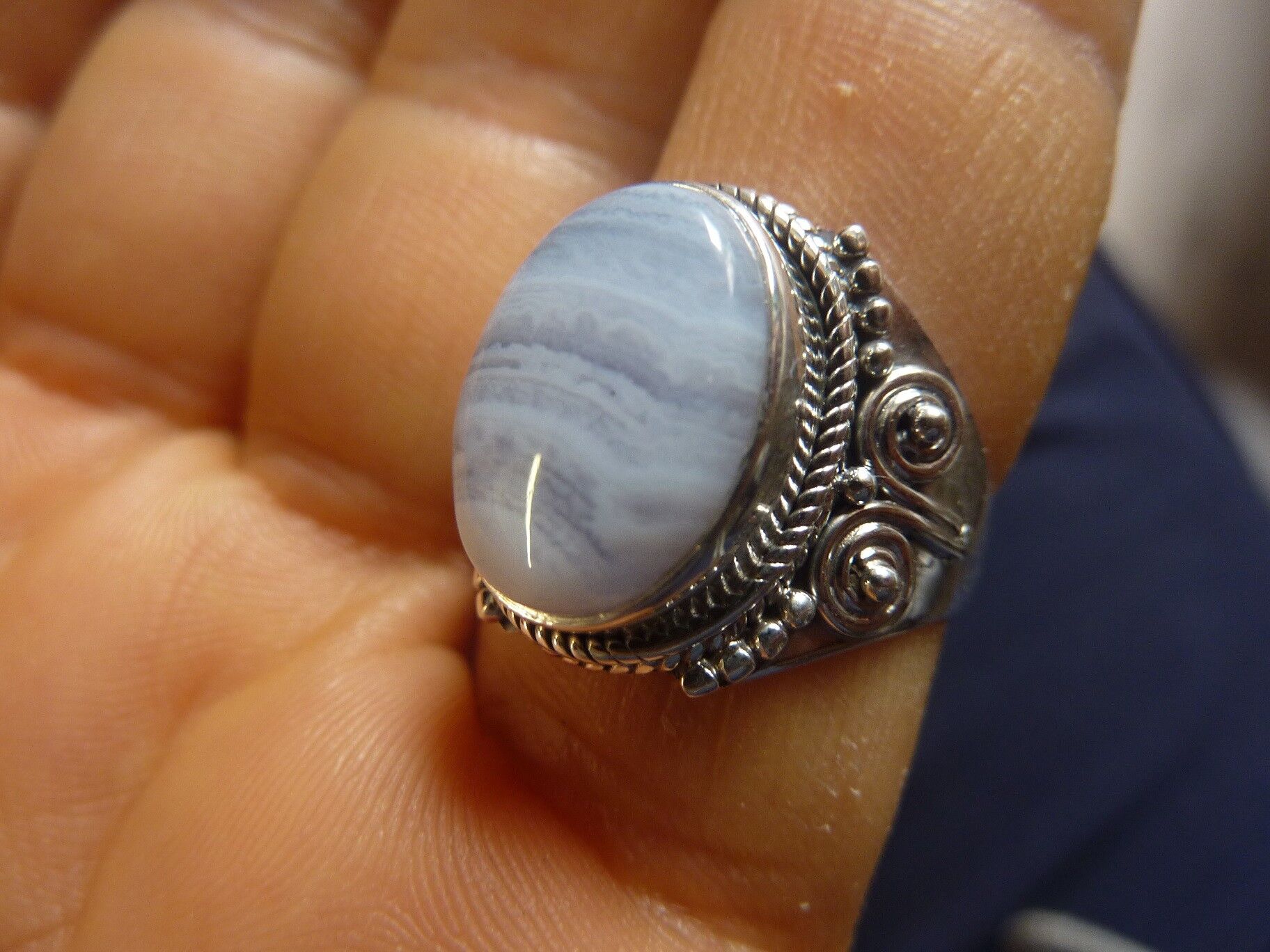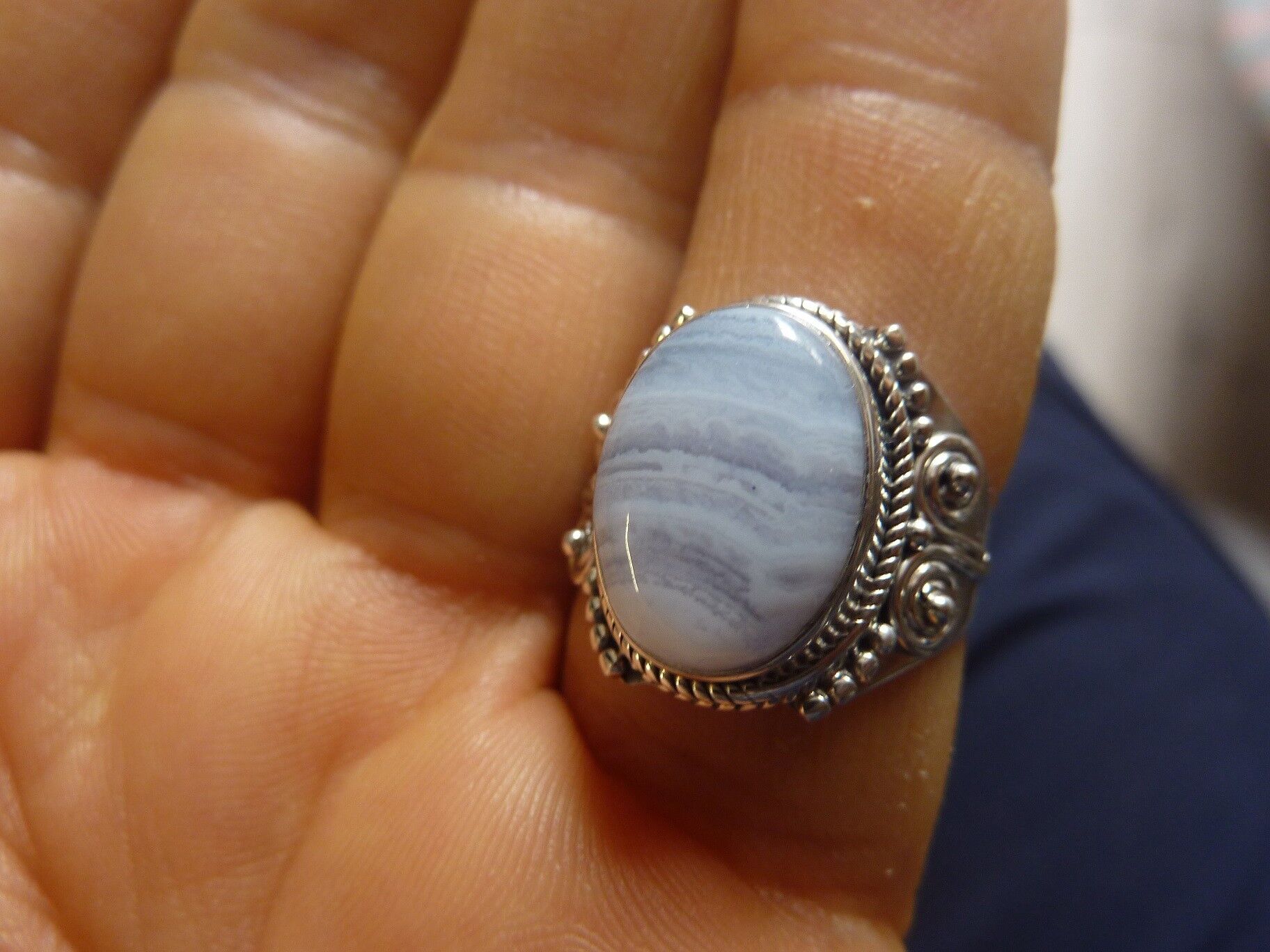 Bague calcédoine bleu monture argent 925 taille 58 3/4 ref 3915