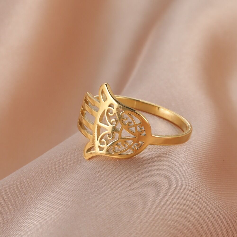 • Bague main de Fatma Hamsa en acier inoxydable ( Ne se décolore pas après le contact avec l’eau. Ne s’assombrira pas. Ne rouille pas