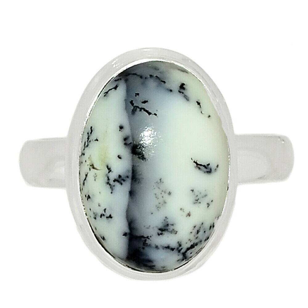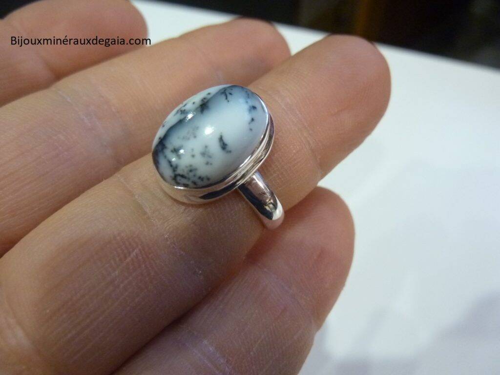 Bague Merlinite opale dentritique Monture argent 925 Taille 54 REF 6458