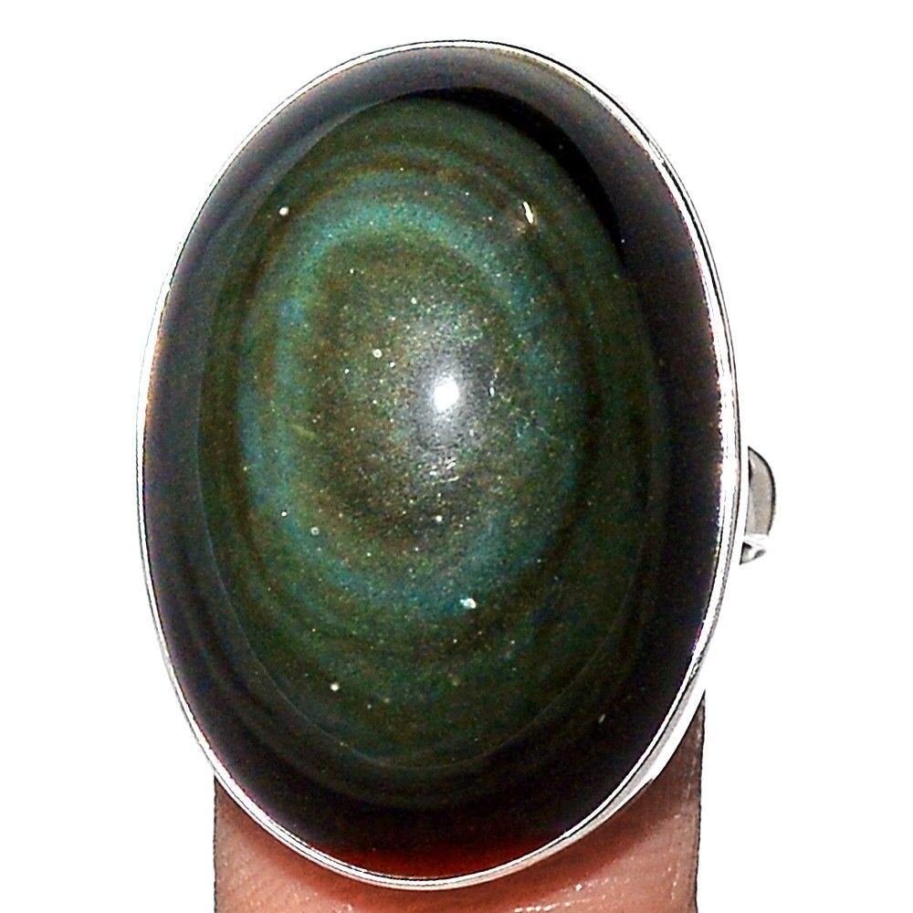 Bague obsidienne oeil celeste argent 925 taille 57 3/4 ref 1690