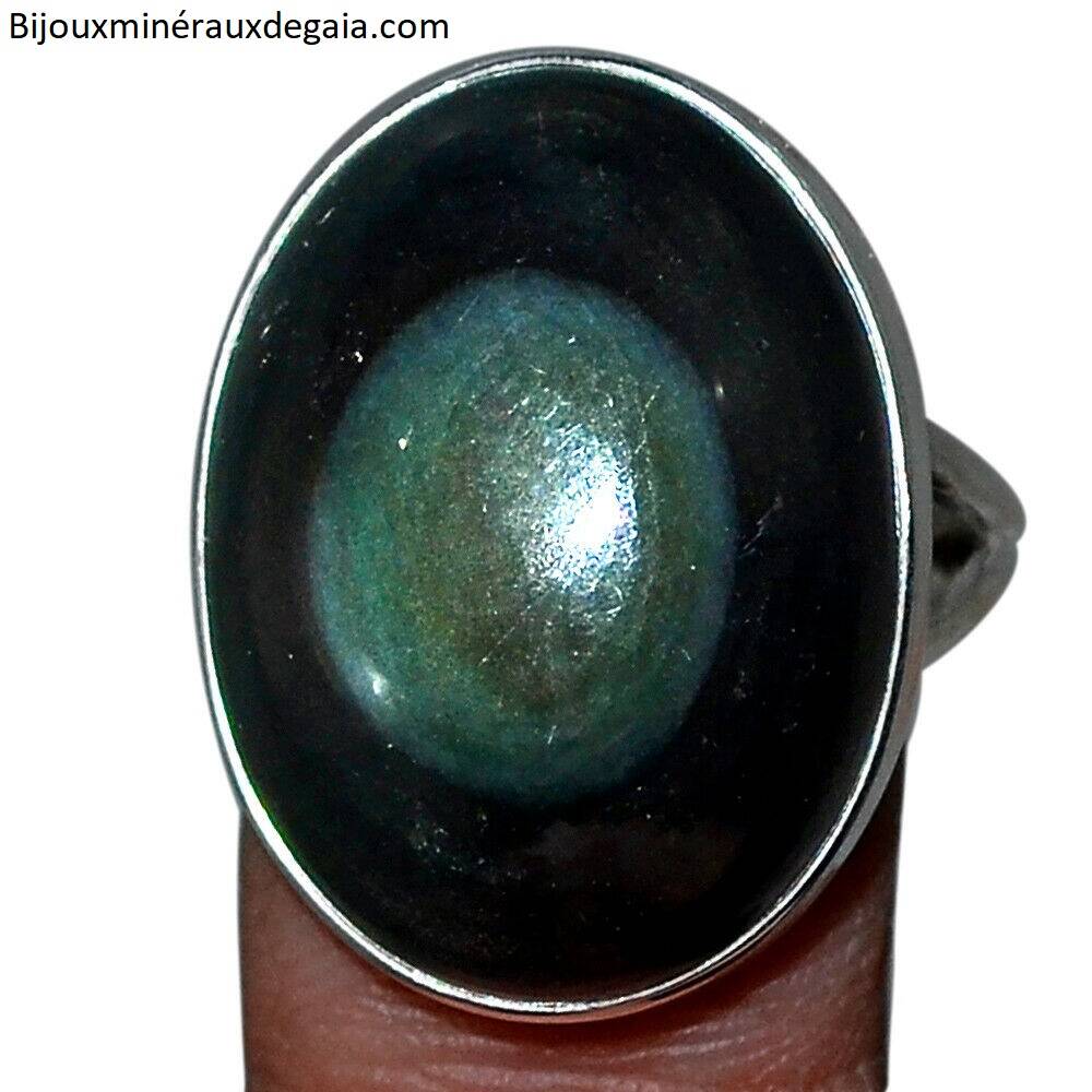 Bague obsidienne oeil celeste argent 925 taille 60 ref 3427