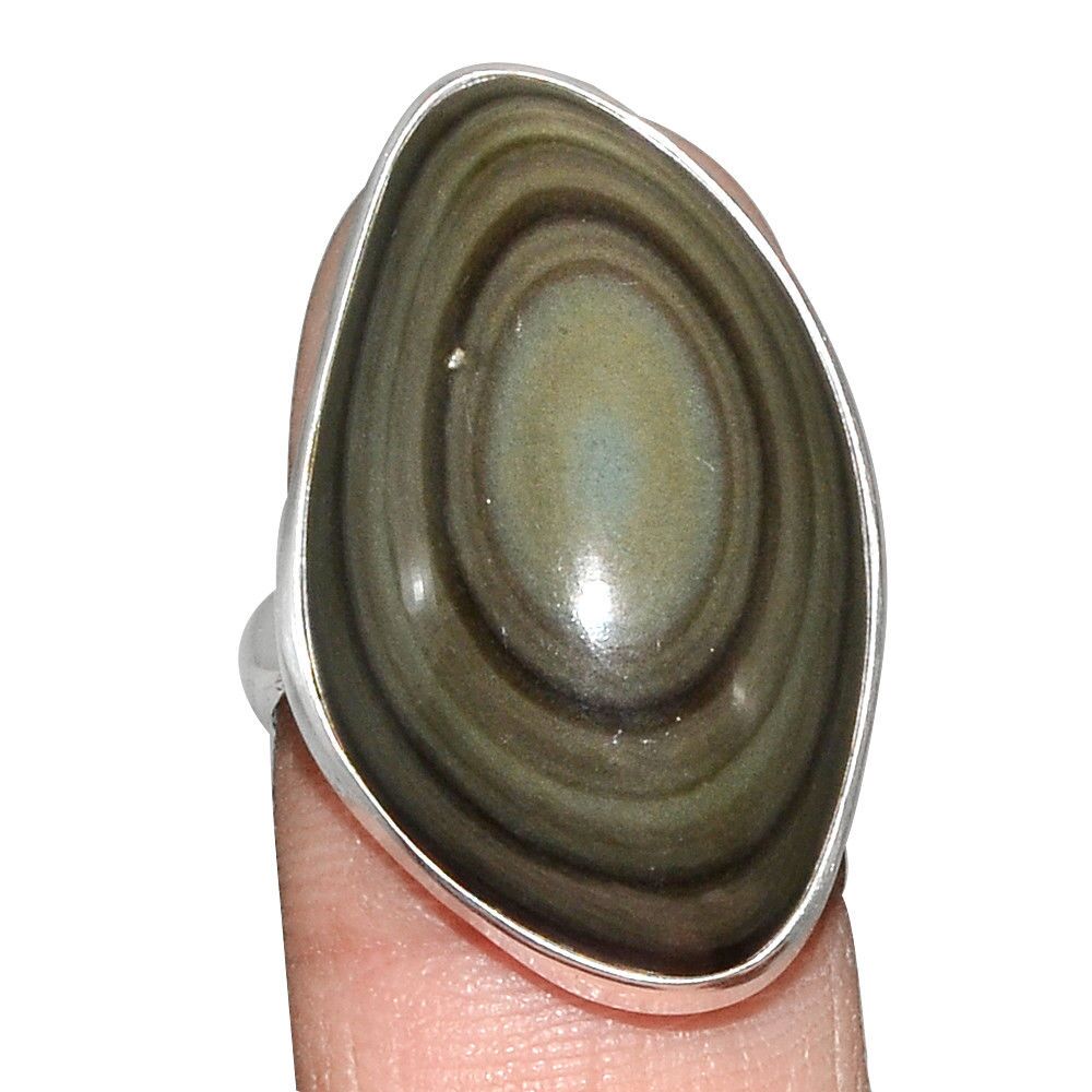 Bague protection obsidienne oeil celeste argent 925 taille 56 1/2 ref 2979