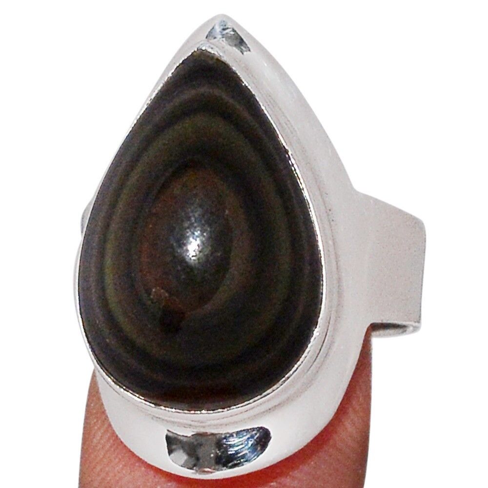 Bague protection obsidienne oeil celeste argent 925 taille 58 3/4 ref 5656