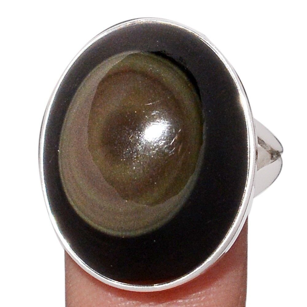 Bague protection obsidienne oeil celeste argent 925 taille 58 3/4 ref 8373