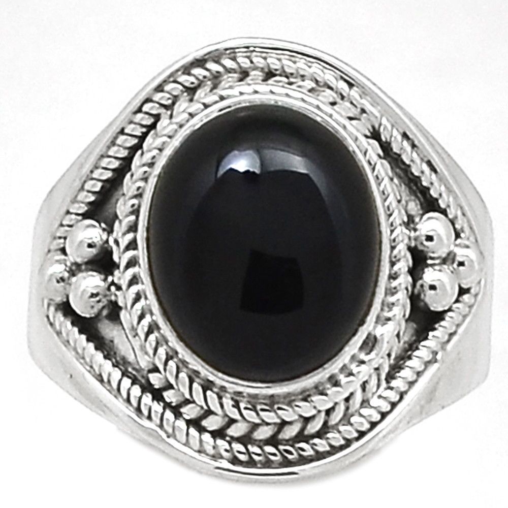 BAGUE PROTECTION SPINELLE NOIR & ARGENT 925 TAILLE 56 1/2 ref 0716