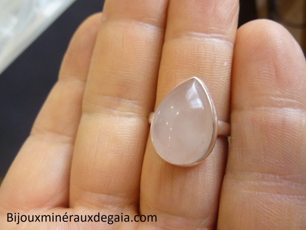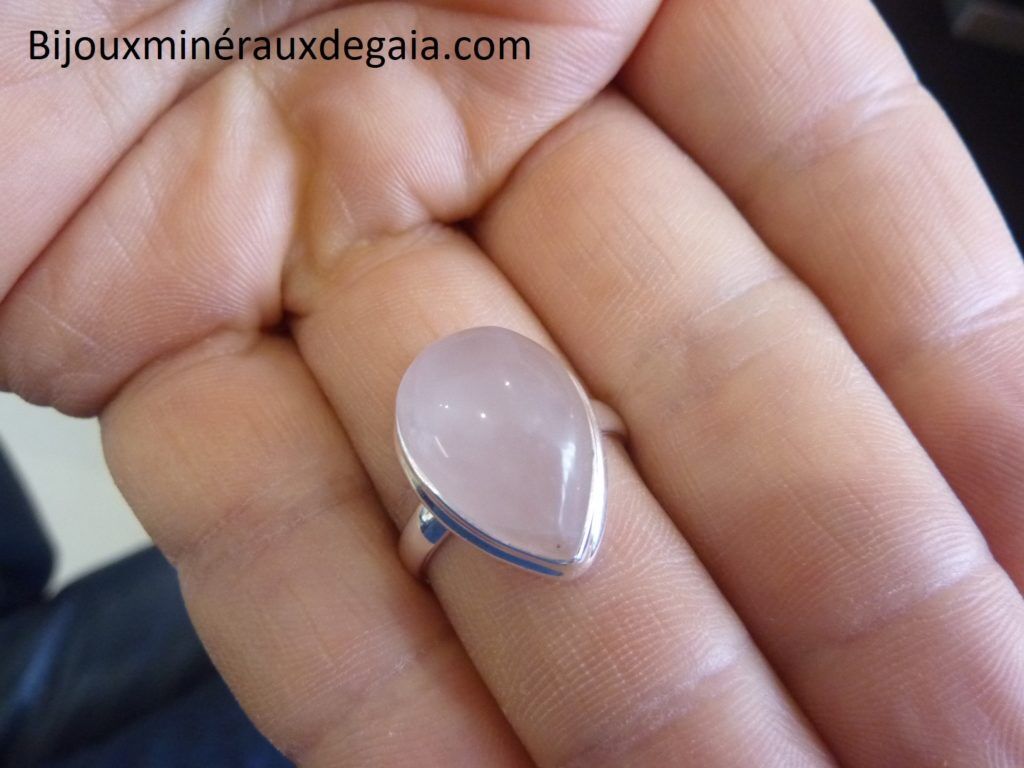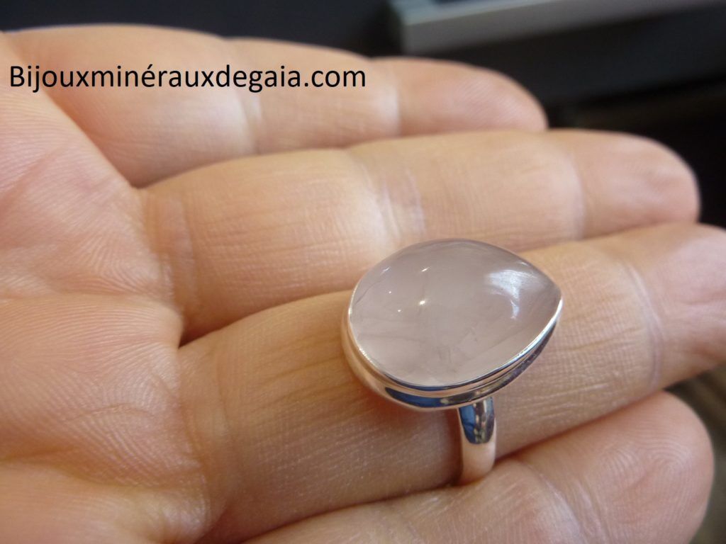 Bague quartz rose monture argent 925 taille 60 ref 3770