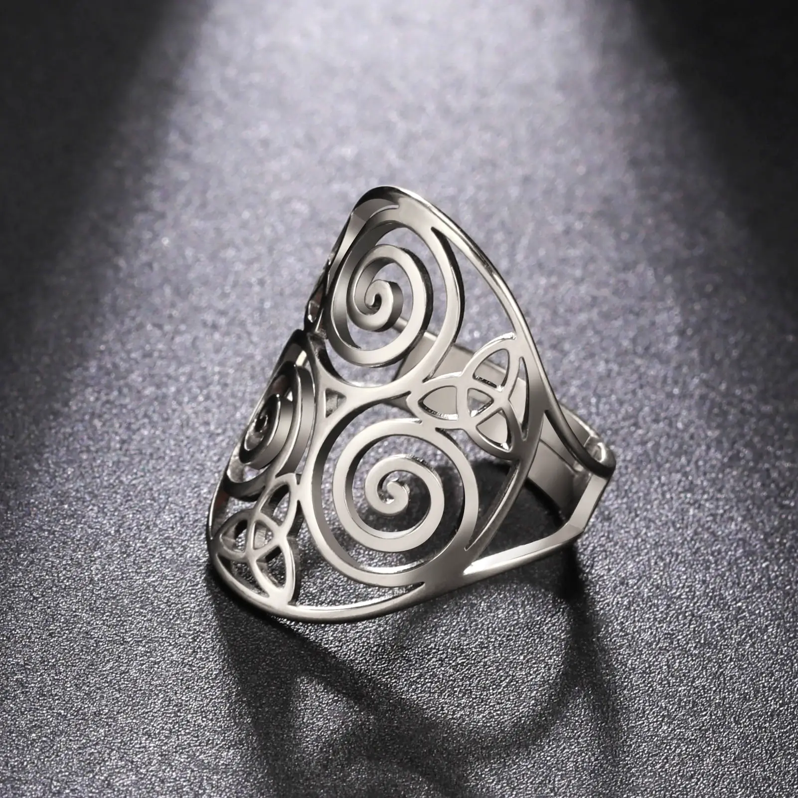 Bague Ajustable Celte avec Triskel en Acier inoxydable (Ne rouille pas) pour Femme