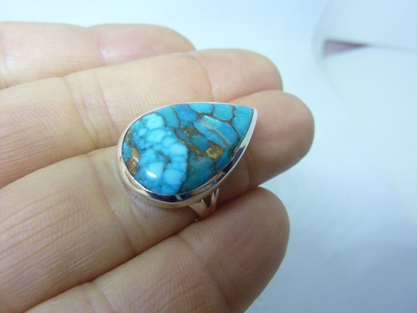 BAGUE TURQUOISE MONTURE EN ARGENT 925.TAILLE 52 3/4 REF 4527