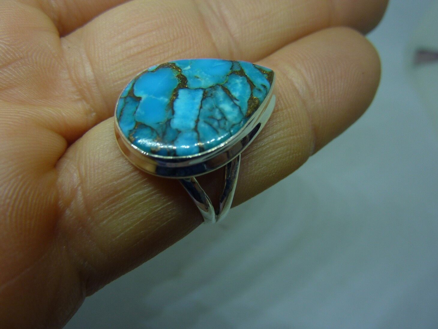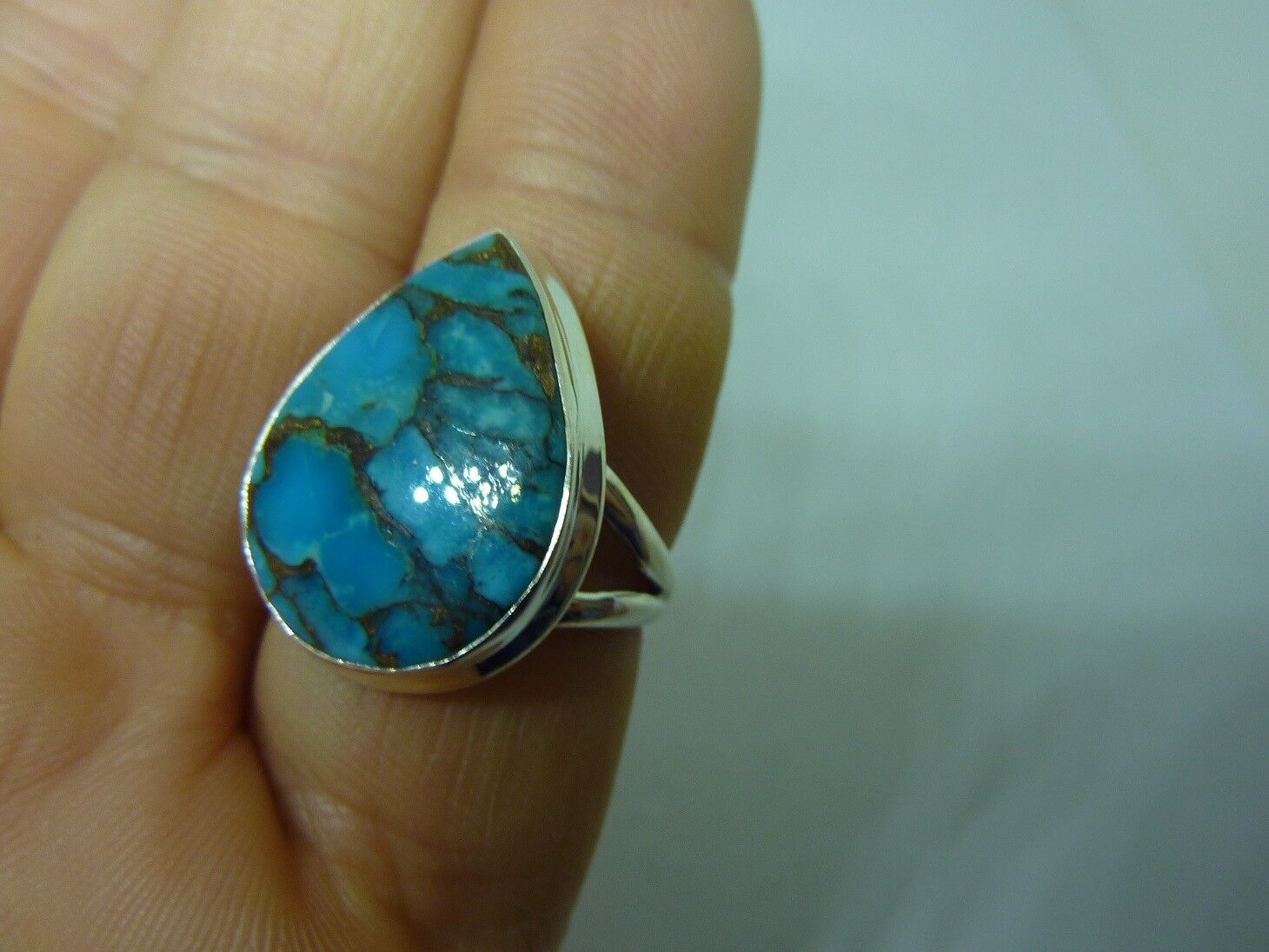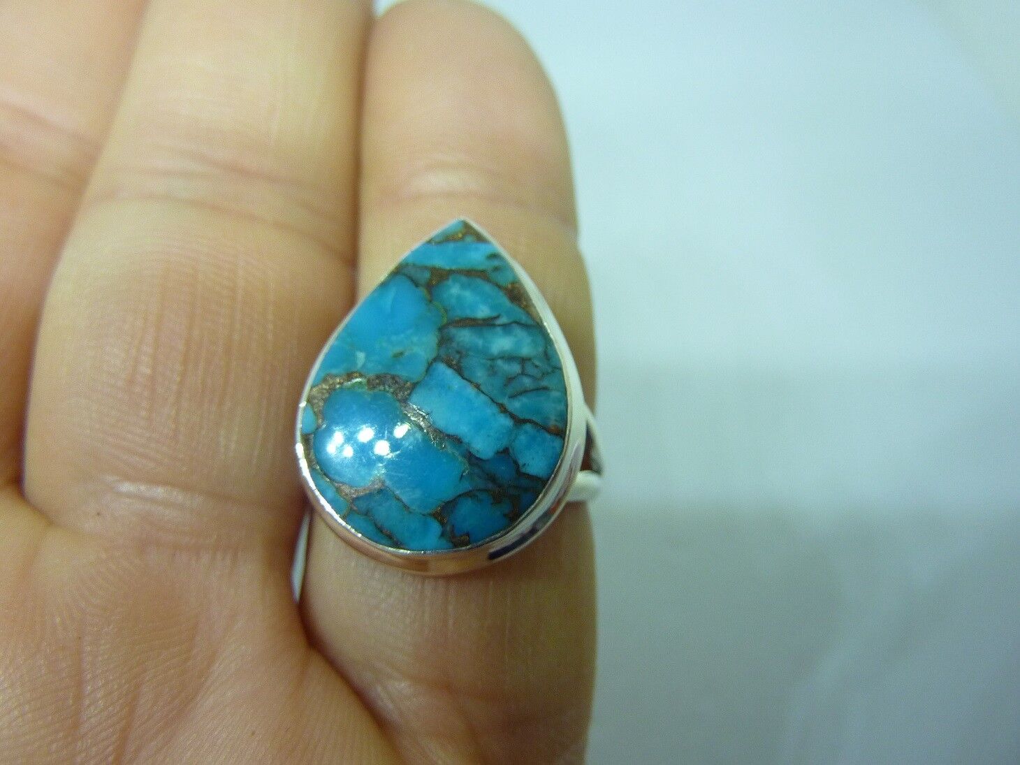 BAGUE TURQUOISE MONTURE EN ARGENT 925.TAILLE 57 3/4 REF 1272