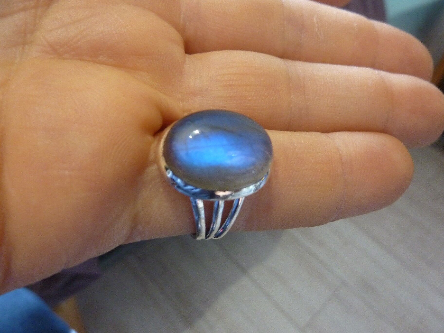 SUBLIME BAGUE EN LABRADORITE & ARGENT 925 TAILLE 58 1/4 ref 4978