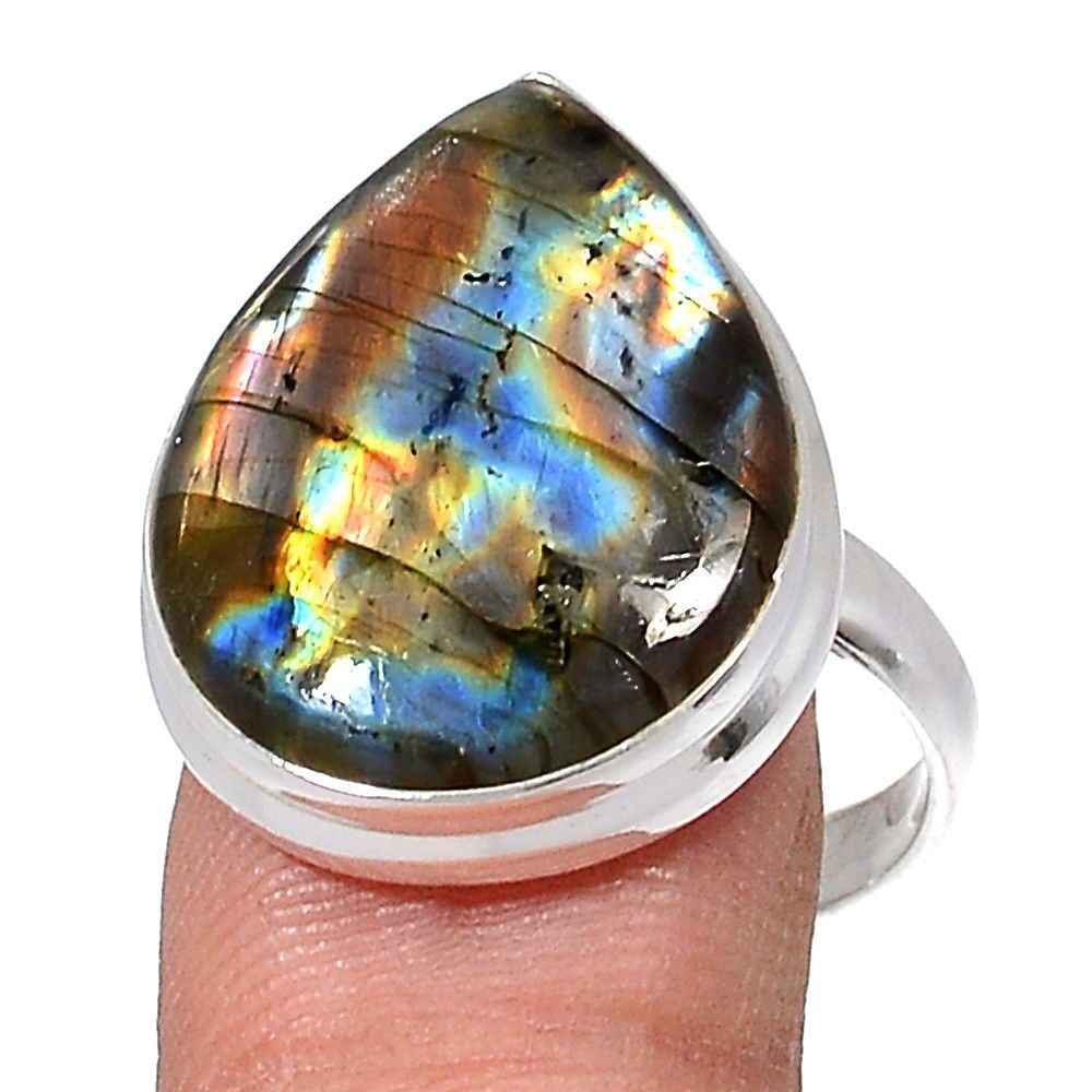 SUBLIME BAGUE EN LABRADORITE & ARGENT 925 TAILLE 62 ref 0701