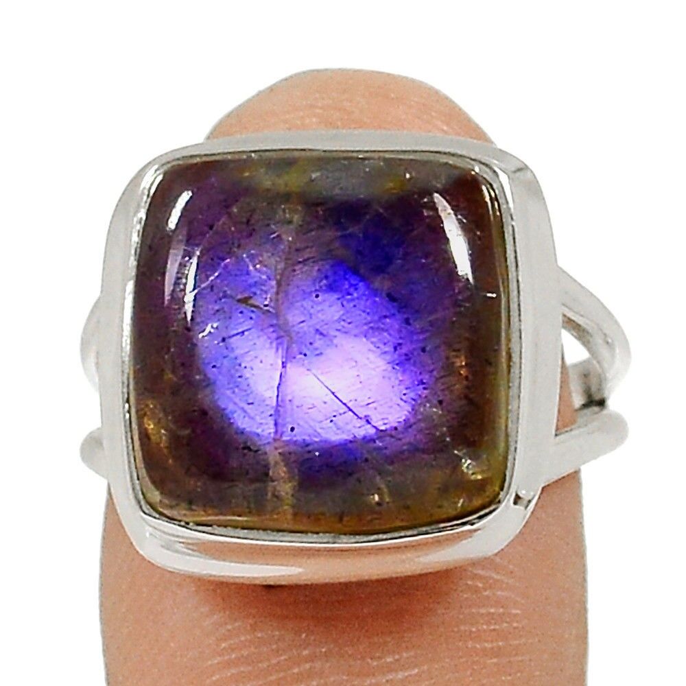 SUBLIME BAGUE EN LABRADORITE VIOLET RARE & ARGENT 925 TAILLE 55 1/4 ref 4089