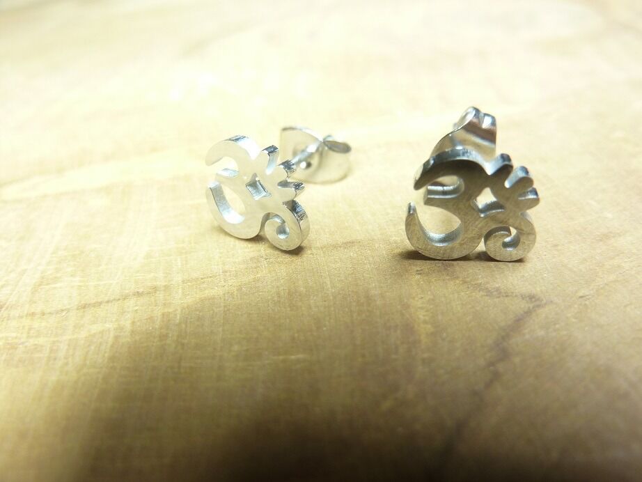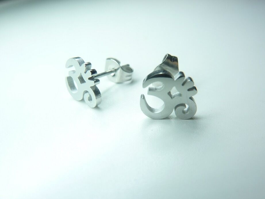 Boucles d’oreilles « clous » Om en acier inoxydable 316L ref argent