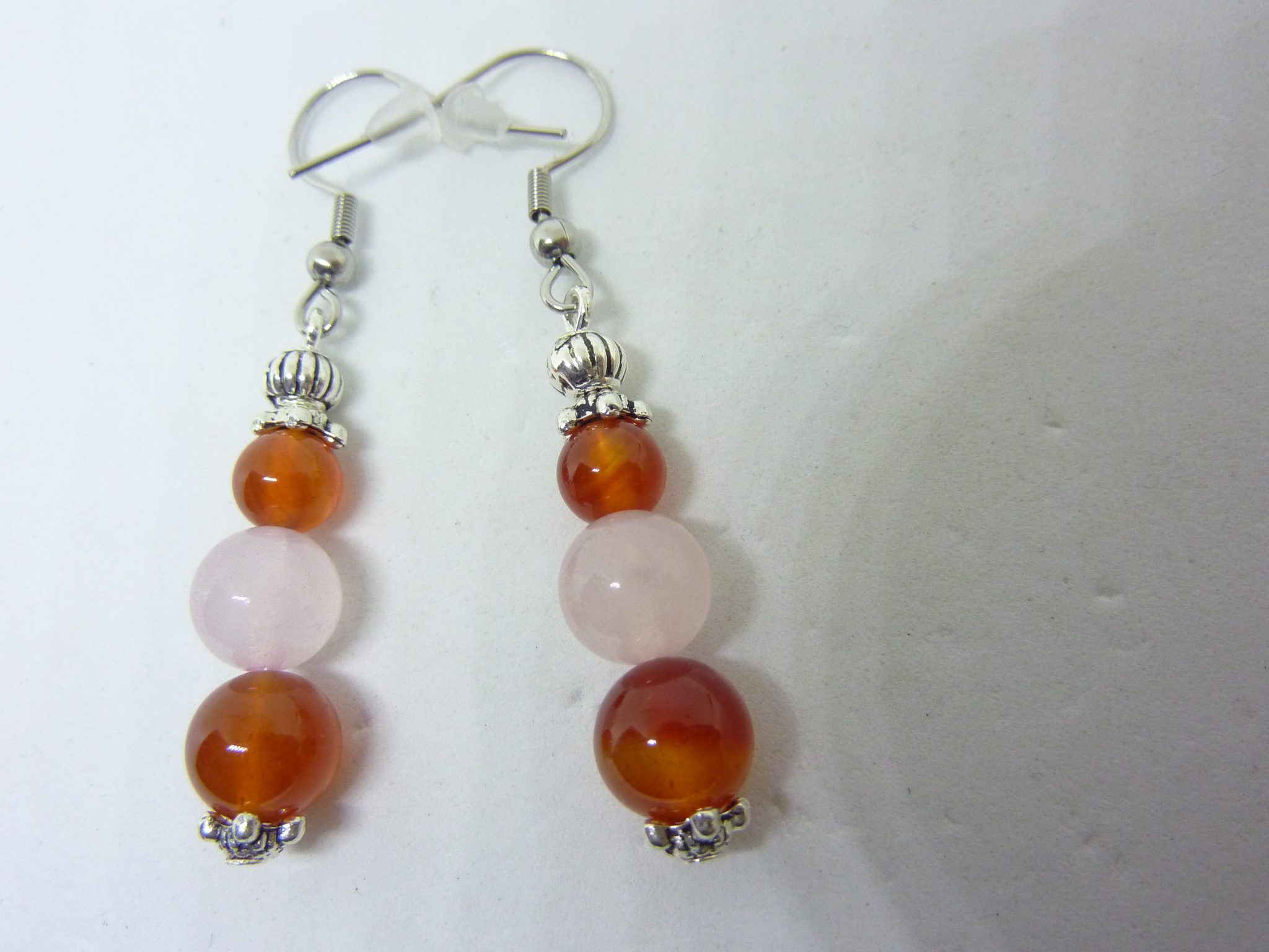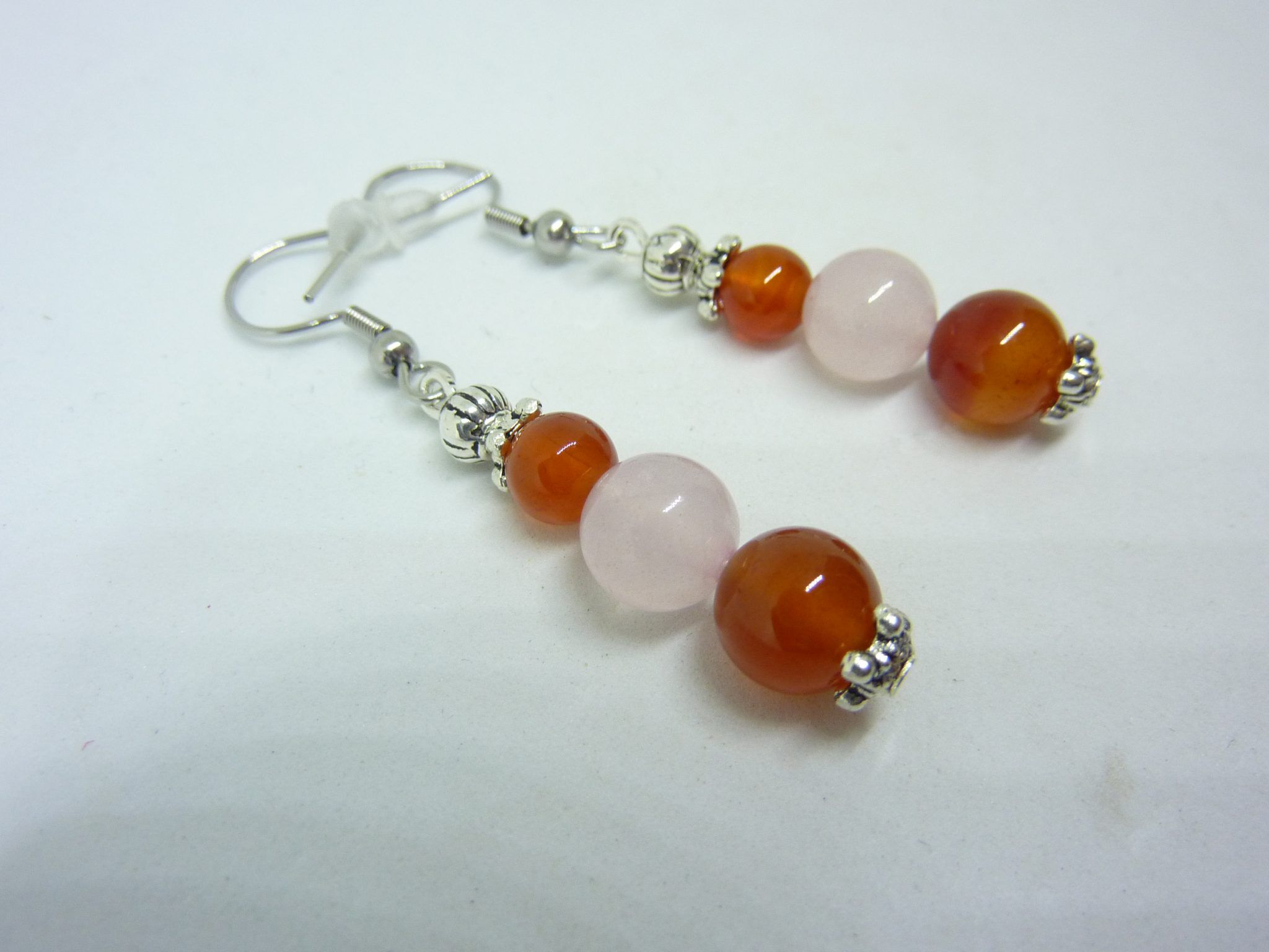 Boucles d’oreilles Cornaline,Quar tz rose Paix et positivité