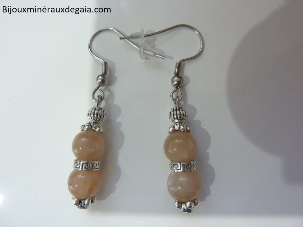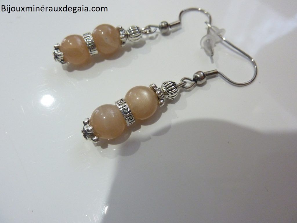 Boucles d’oreilles pierre de soleil-Perles rondes 8 mm