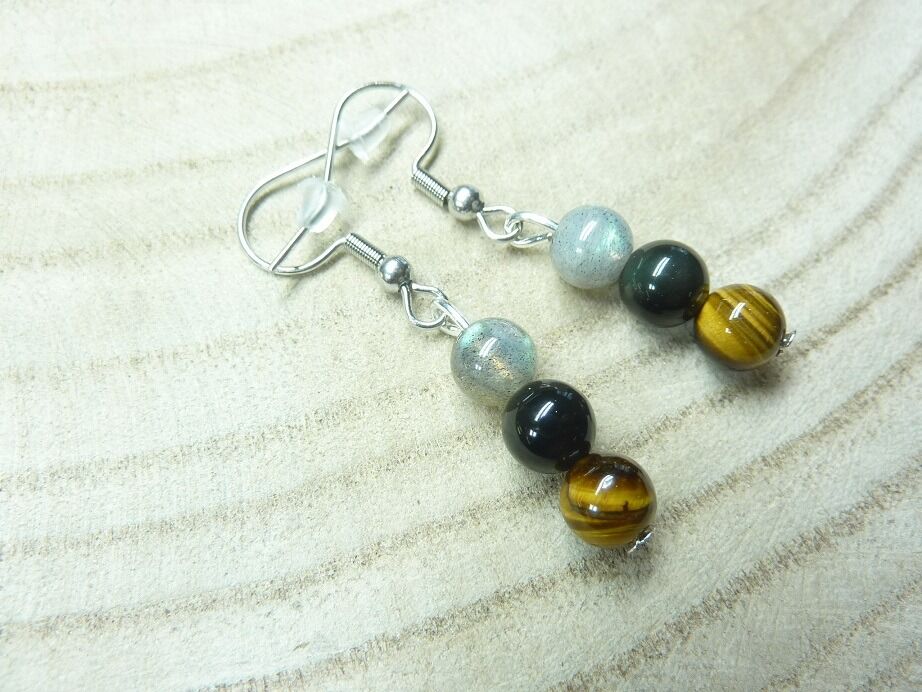 Boucles d’oreilles protection extreme Oeil de tigre Labradorite Obsidienne oeil celeste Perles 6mm