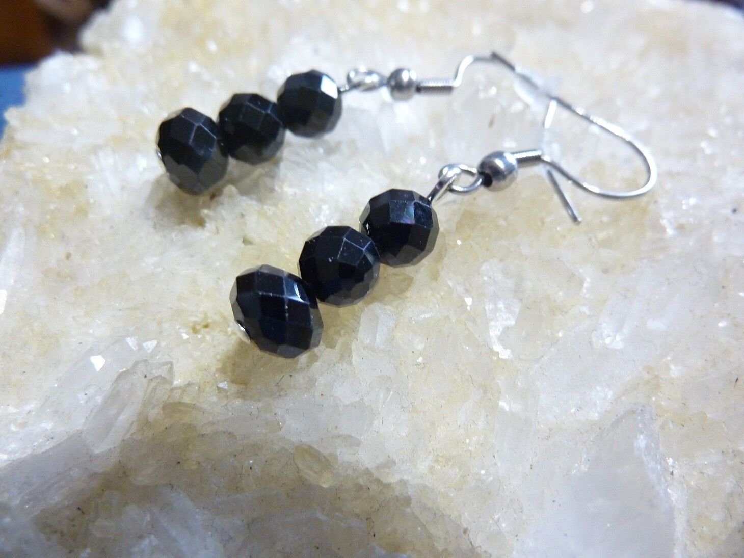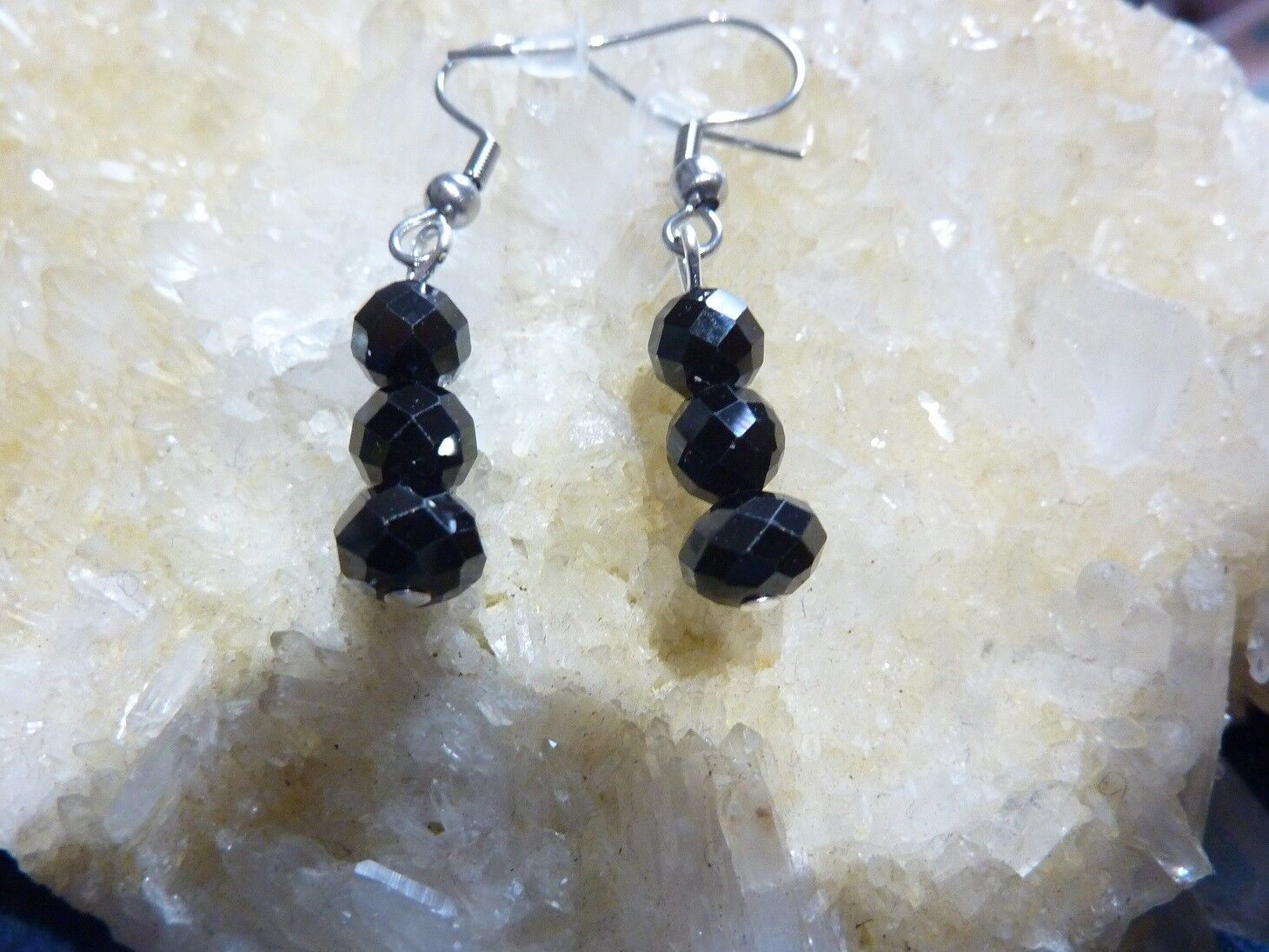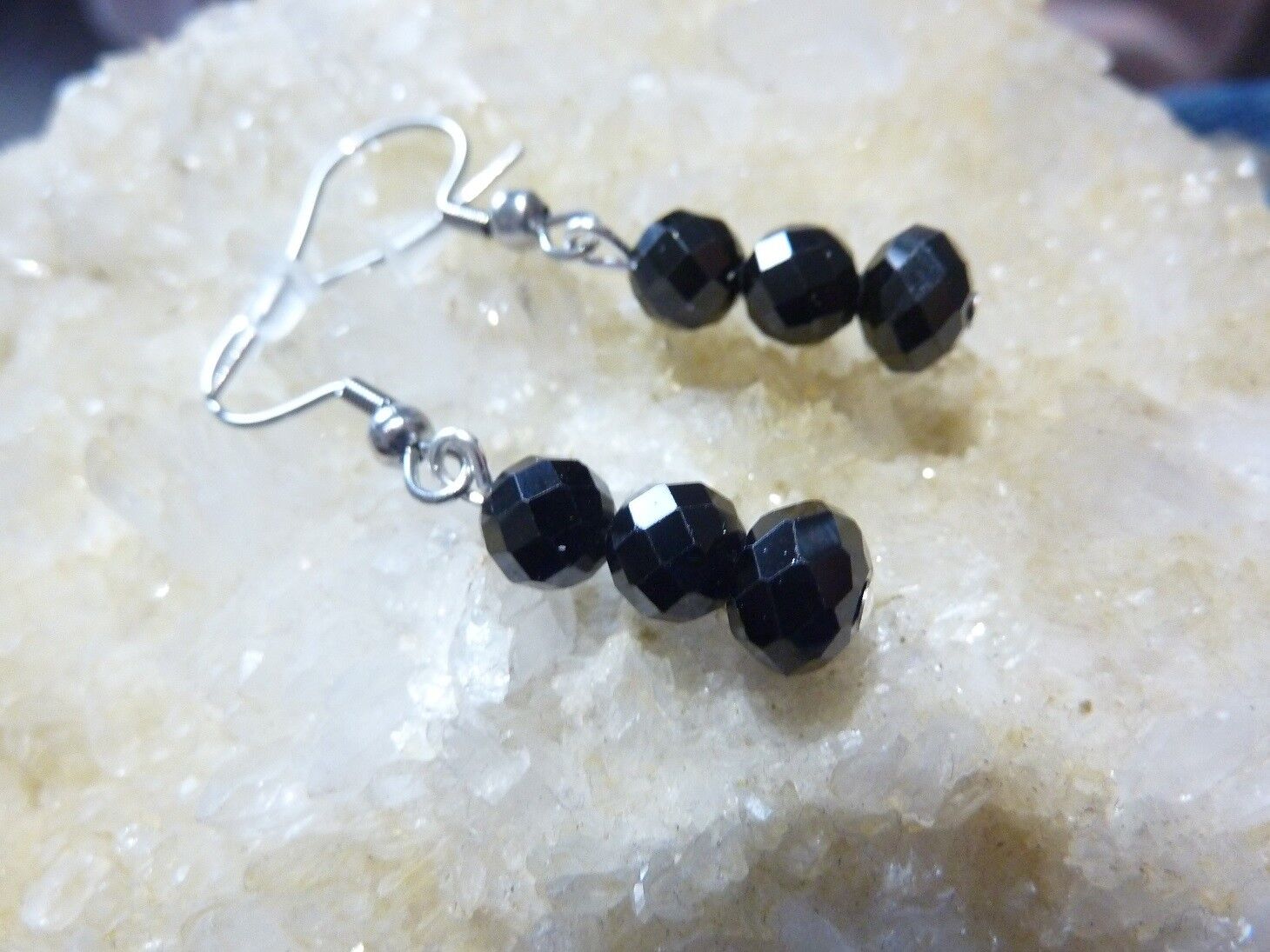 - PERLES RONDES DE SPINELLE NOIR A FACETTES 6MM