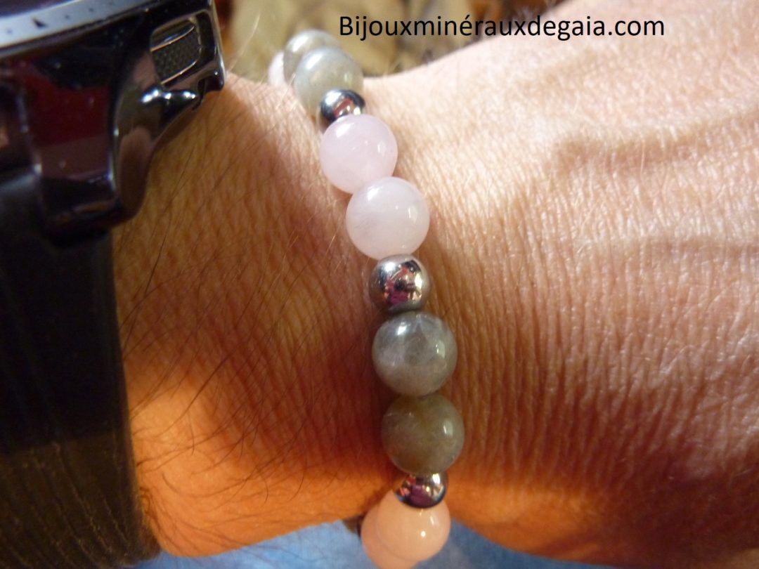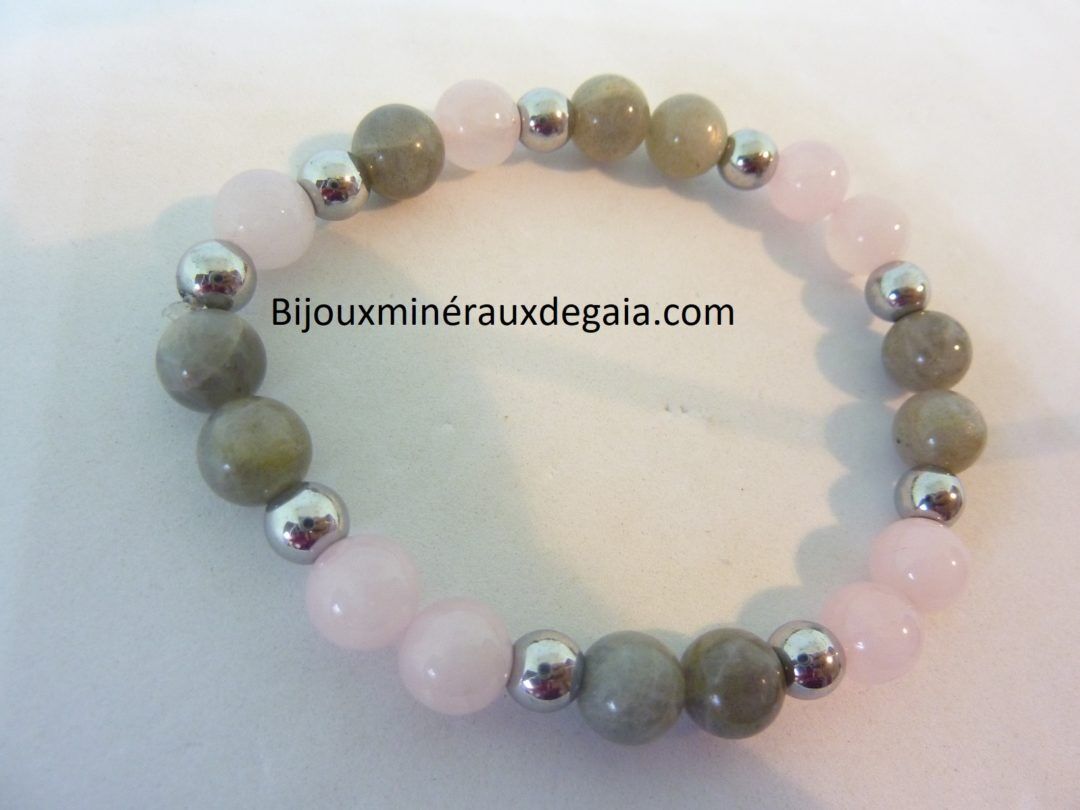 Joie quiétude, estime de soi et protection avec ce bracelet quartz rose-hématite-labradorite