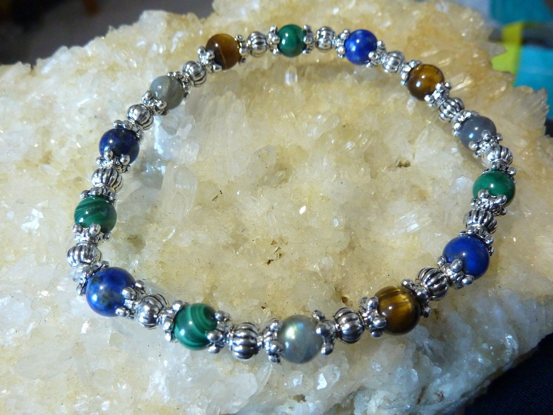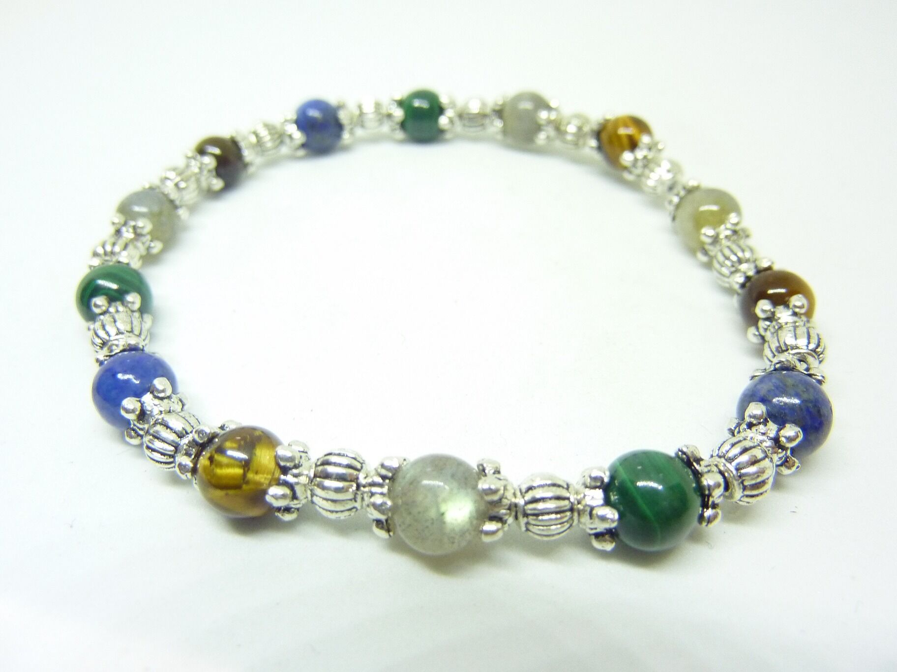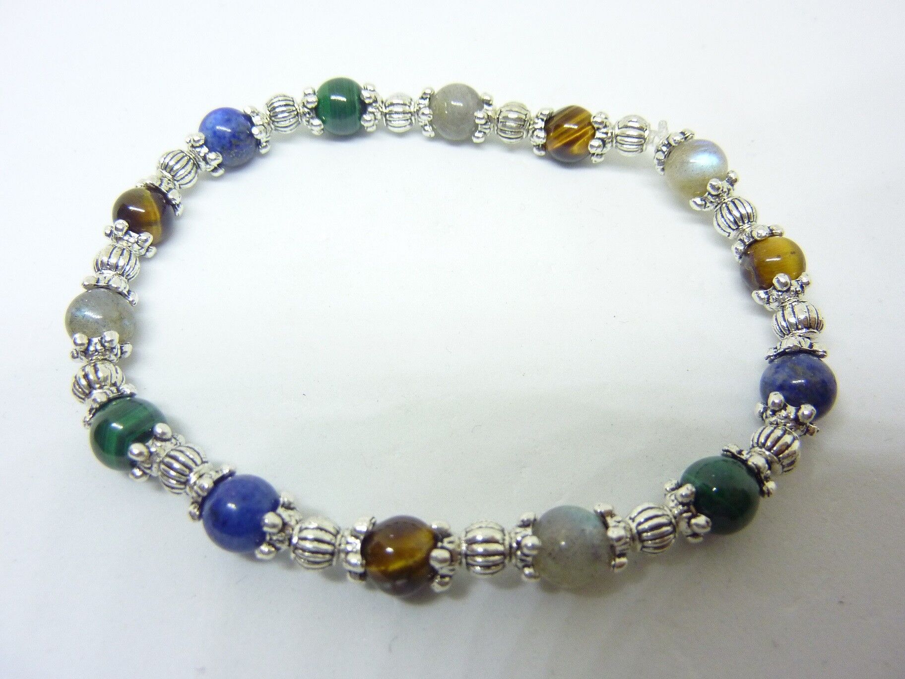 BRACELET MALACHITE LAPIS LAZULI OEIL DE TIGRE LABRADORITE