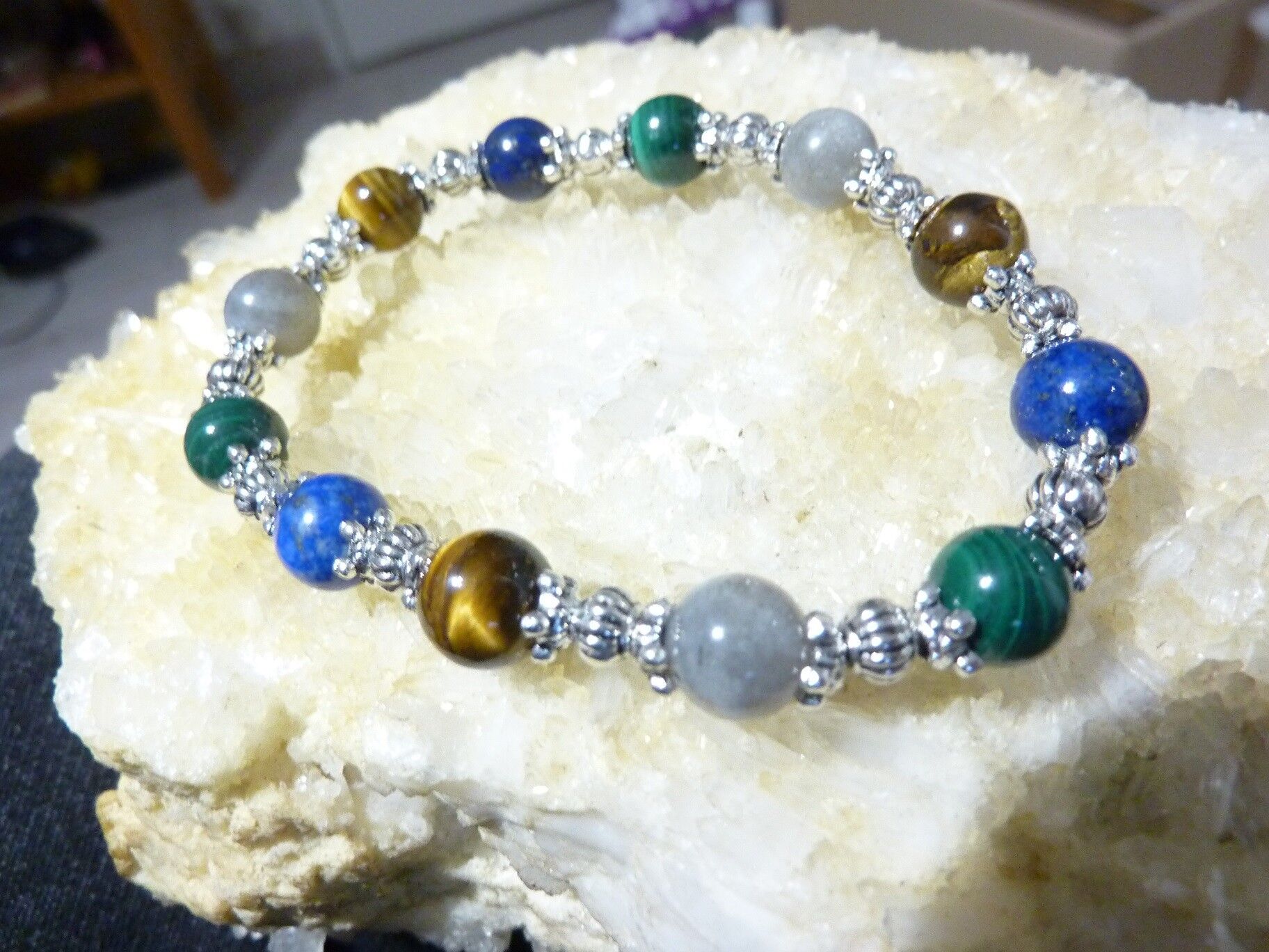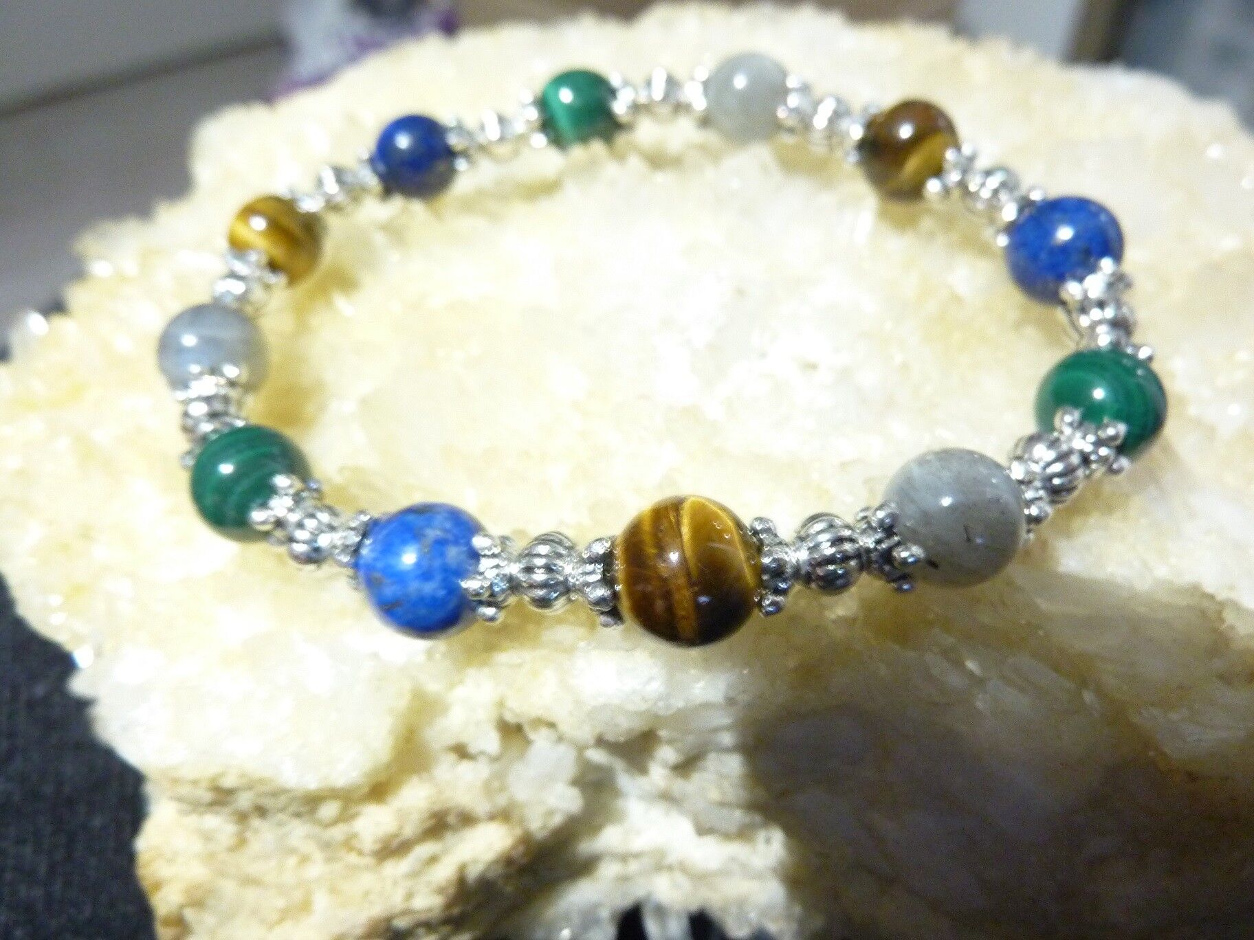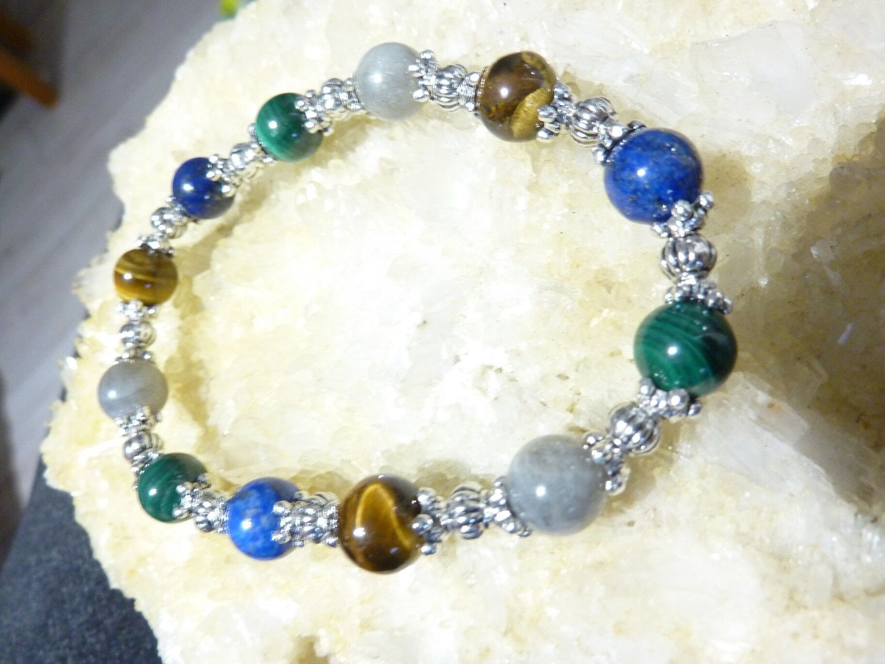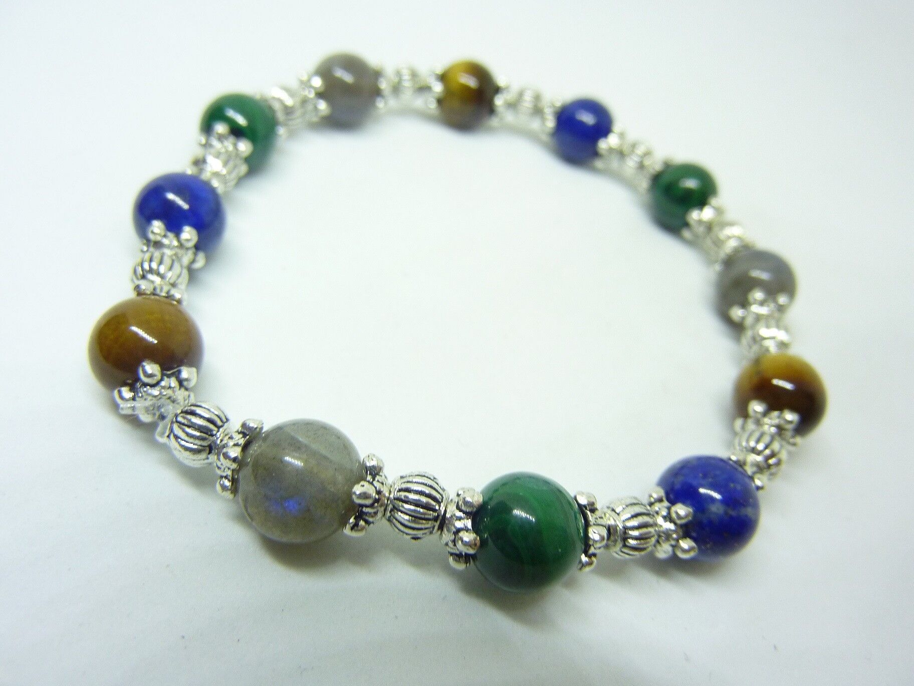 BRACELET MALACHITE LAPIS LAZULI OEIL DE TIGRE LABRADORITE