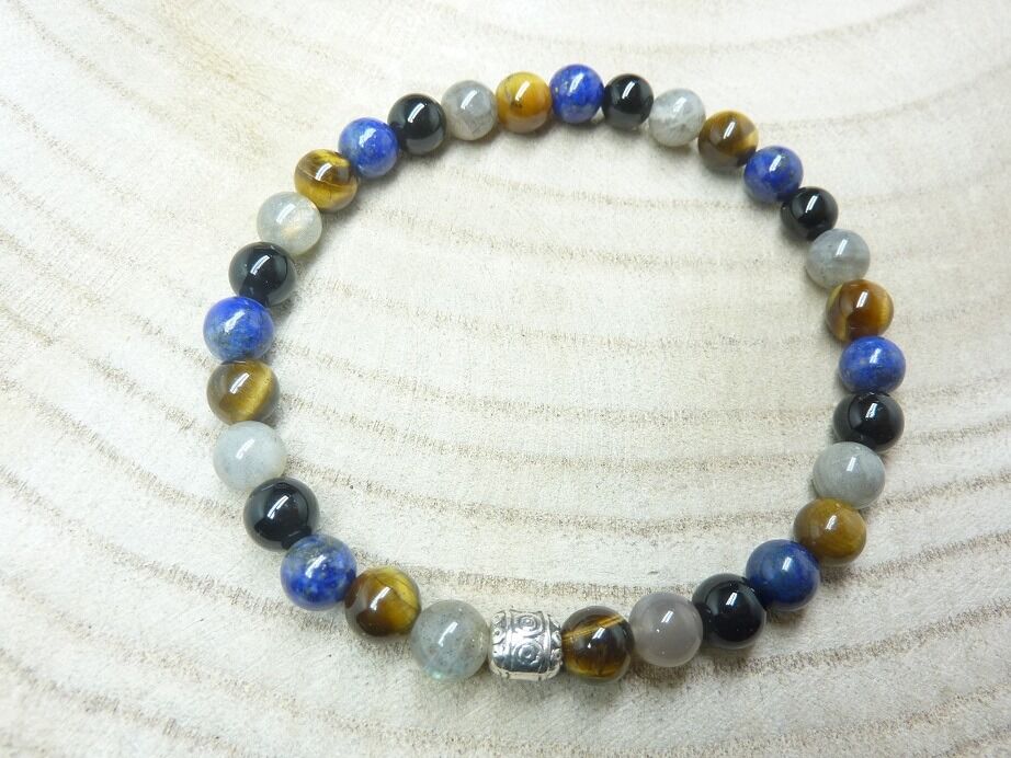 - BRACELET PROTECTION: OEIL DE TIGRE,LABRADORITE,LAPIS LAZULI,TOURMALINE NOIR 6 MM