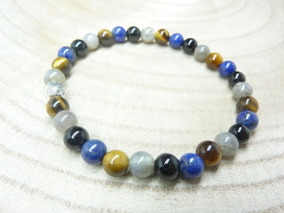 Bracelet Oeil de tigre-Labradorite-Lapis lazuli-Tourmaline noire