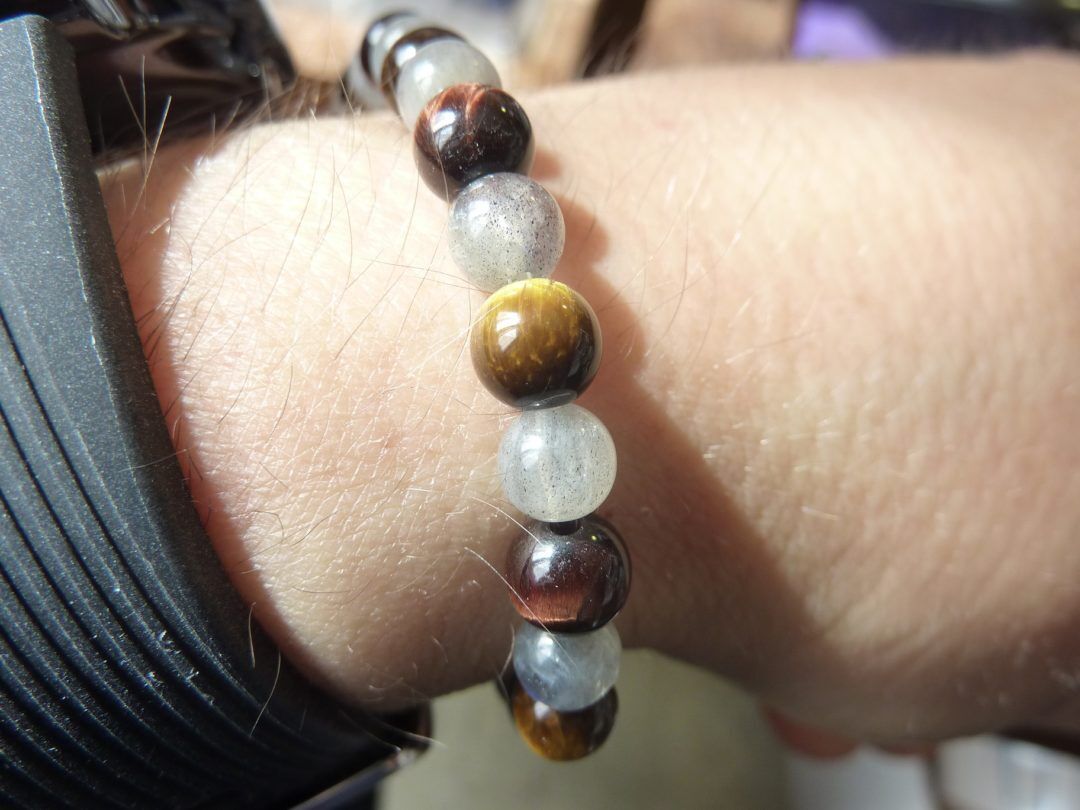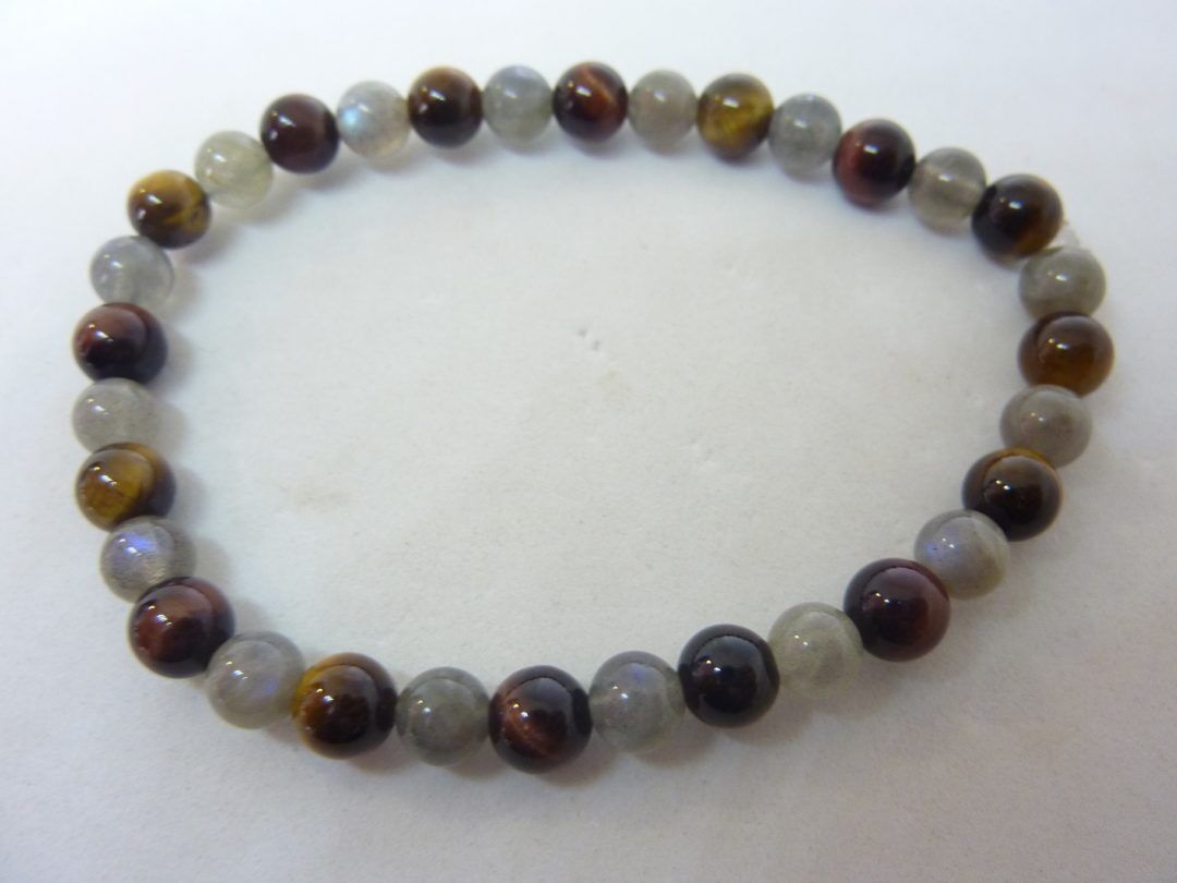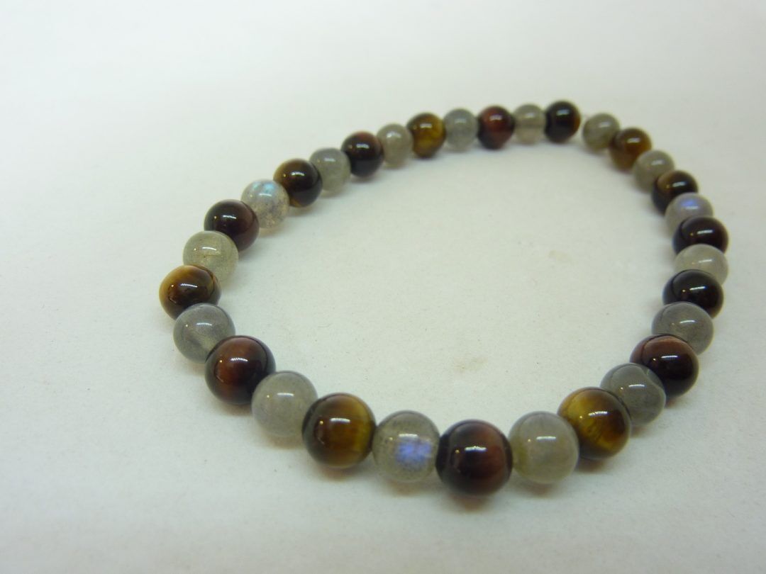 BRACELET OEIL DE TIGRE-TAUREAU-LABRADORITE PERLES 6 MM