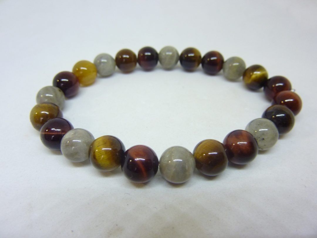 BRACELET OEIL DE TIGRE-TAUREAU-LABRADORITE PERLES 8 MM