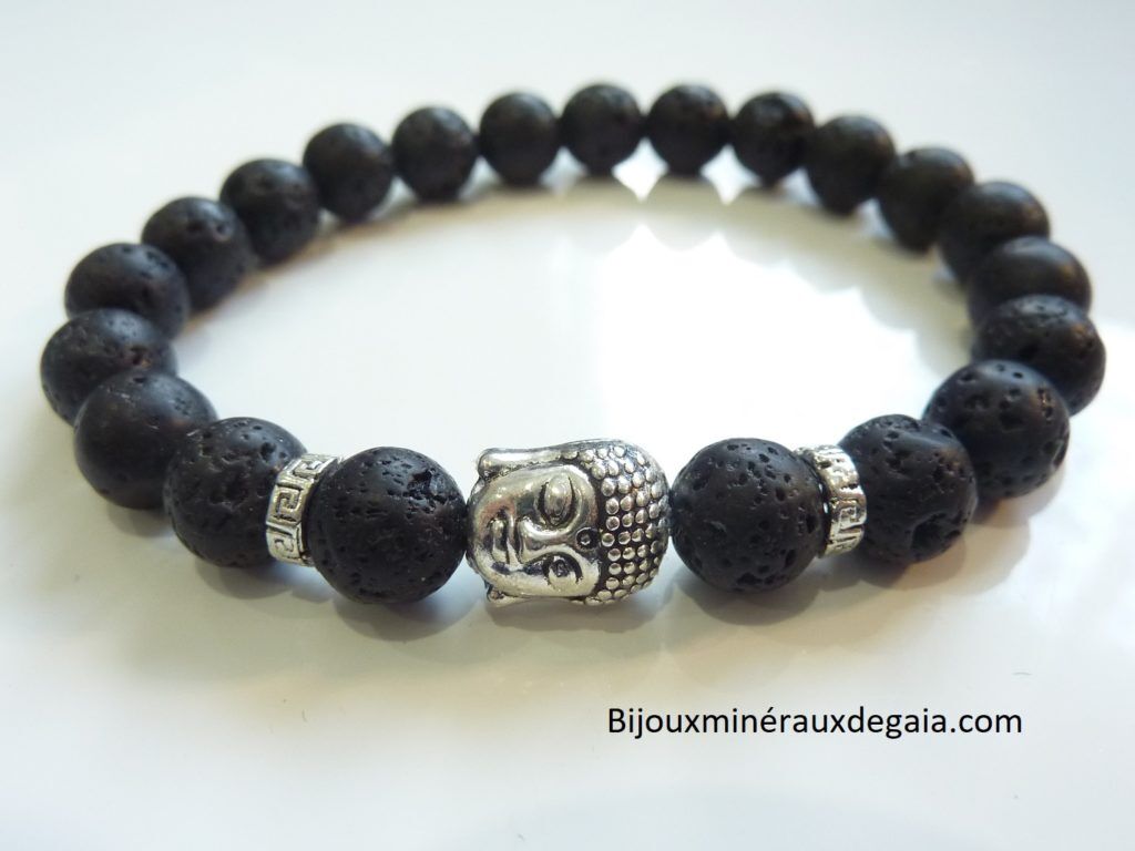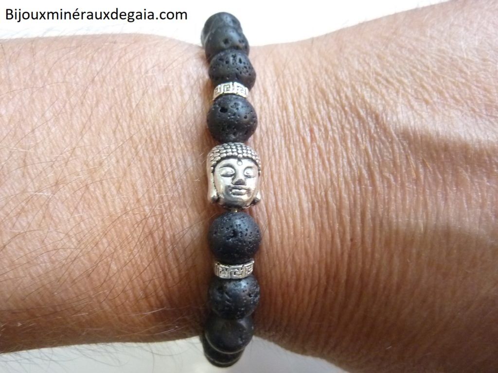 Bracelet Pierre de lave Bouddha-Perles rondes 8 mm