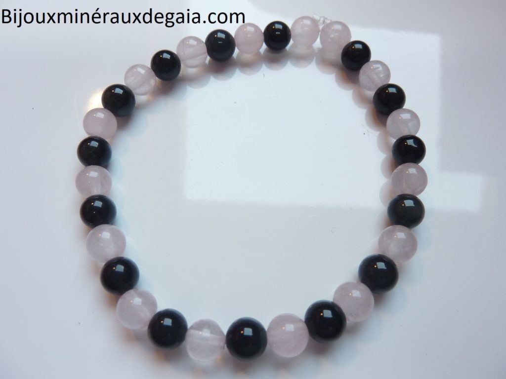 Découvrez le bracelet en perles de Quartz rose et Obsidienne œil céleste, un mariage harmonieux de deux pierres aux puissantes énergies.