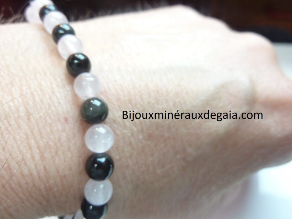 Bracelet Quartz rose-Obsidienne oeil céleste perles 6 mm