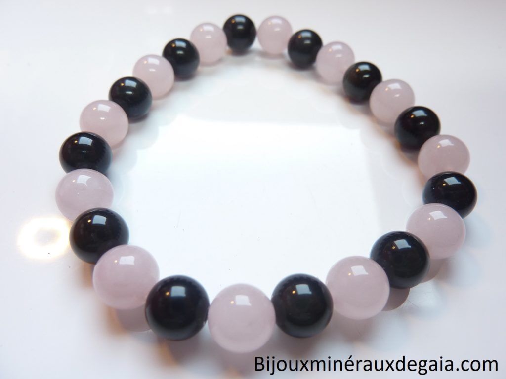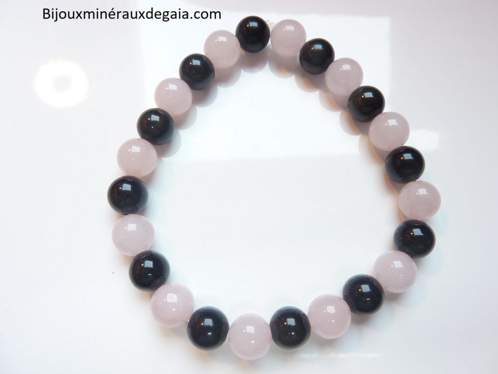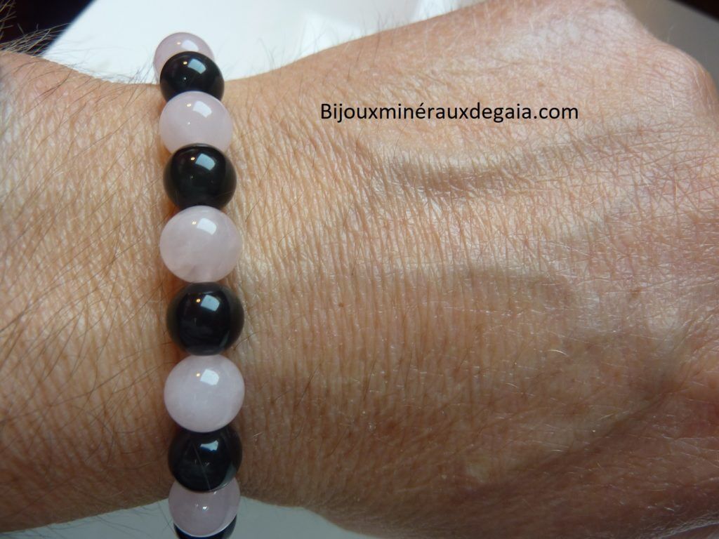 Vous recevrez un Bracelet Quartz rose-Obsidienne oeil céleste perles 8 mm de qualité similaire