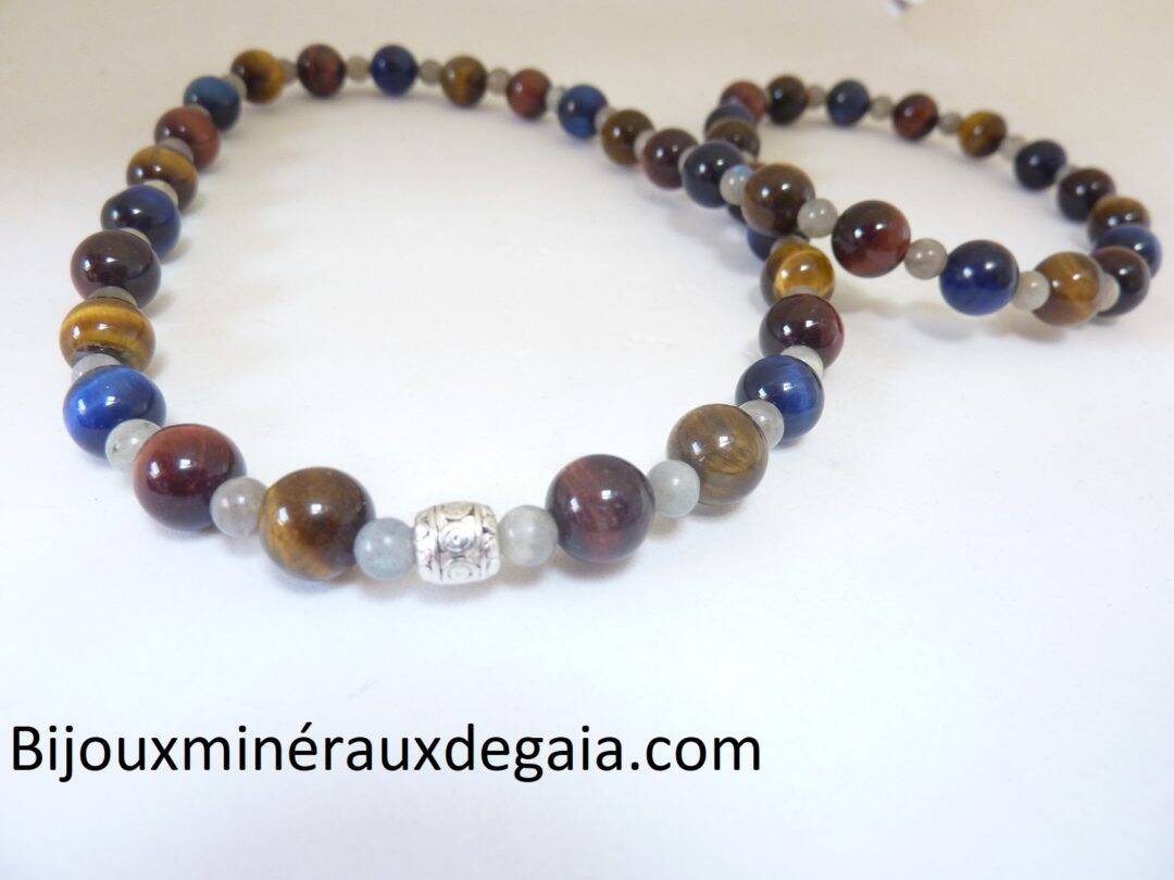 COLLIER OEIL DE TIGRE-FAUCON-TAUREAU-LABRADORITE