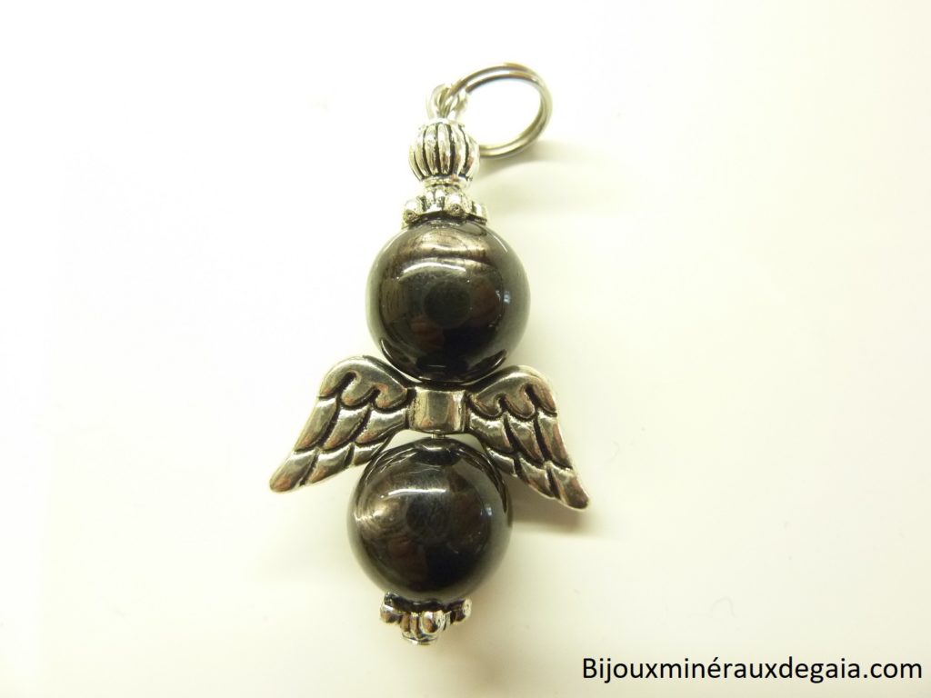 Pendentif Hypersthène Ange – Perles rondes 10 mm