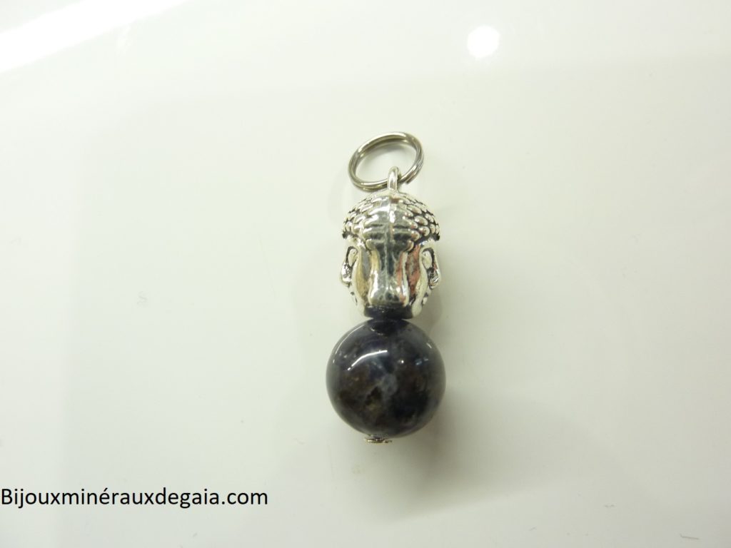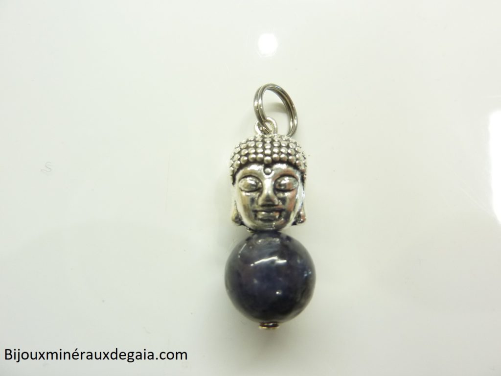 Pendentif Iolite cordiérite Bouddha – Perle ronde 10 mm