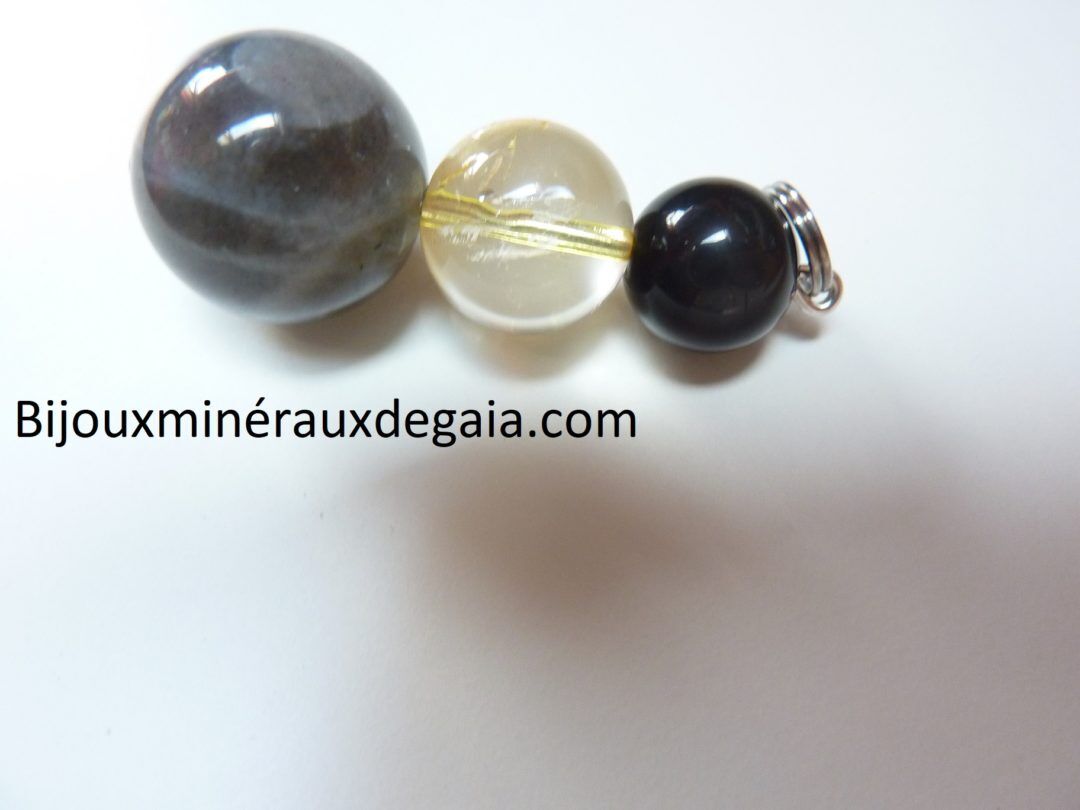 Pendentif Labradorite-obsidienne oeil céleste-citrine