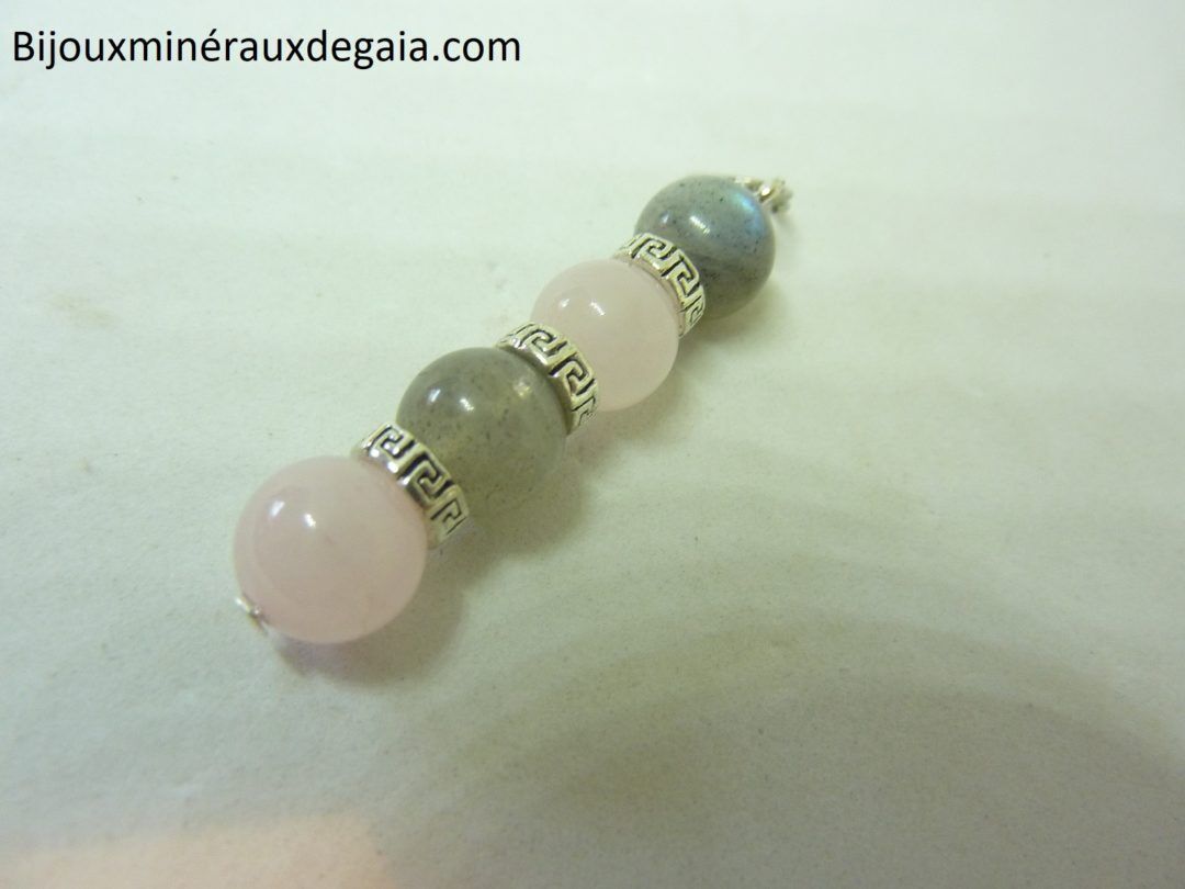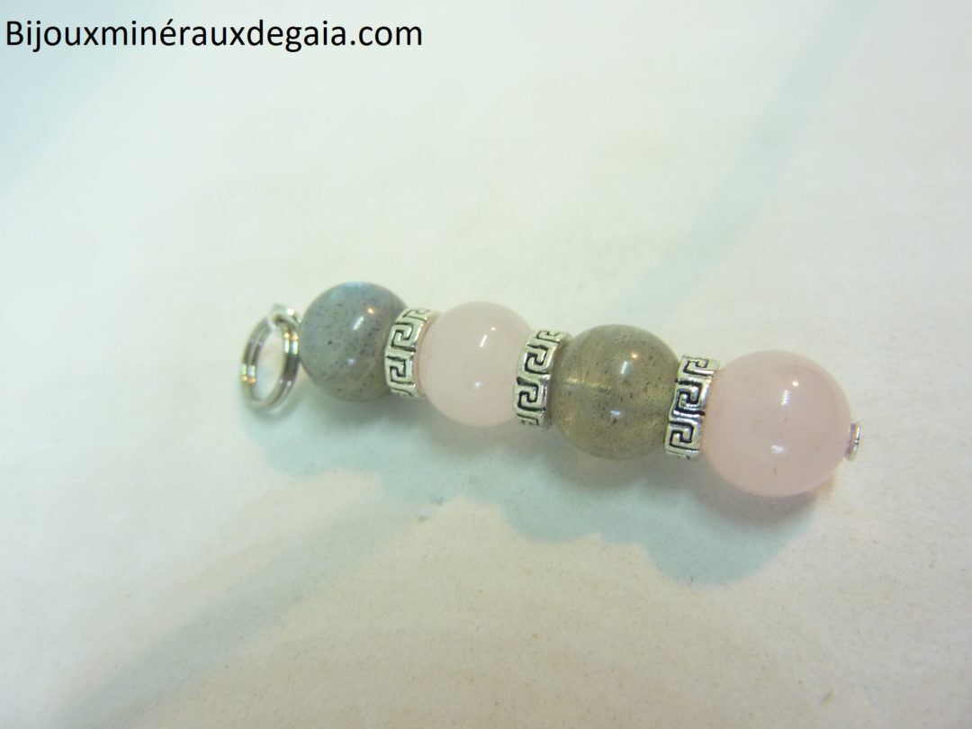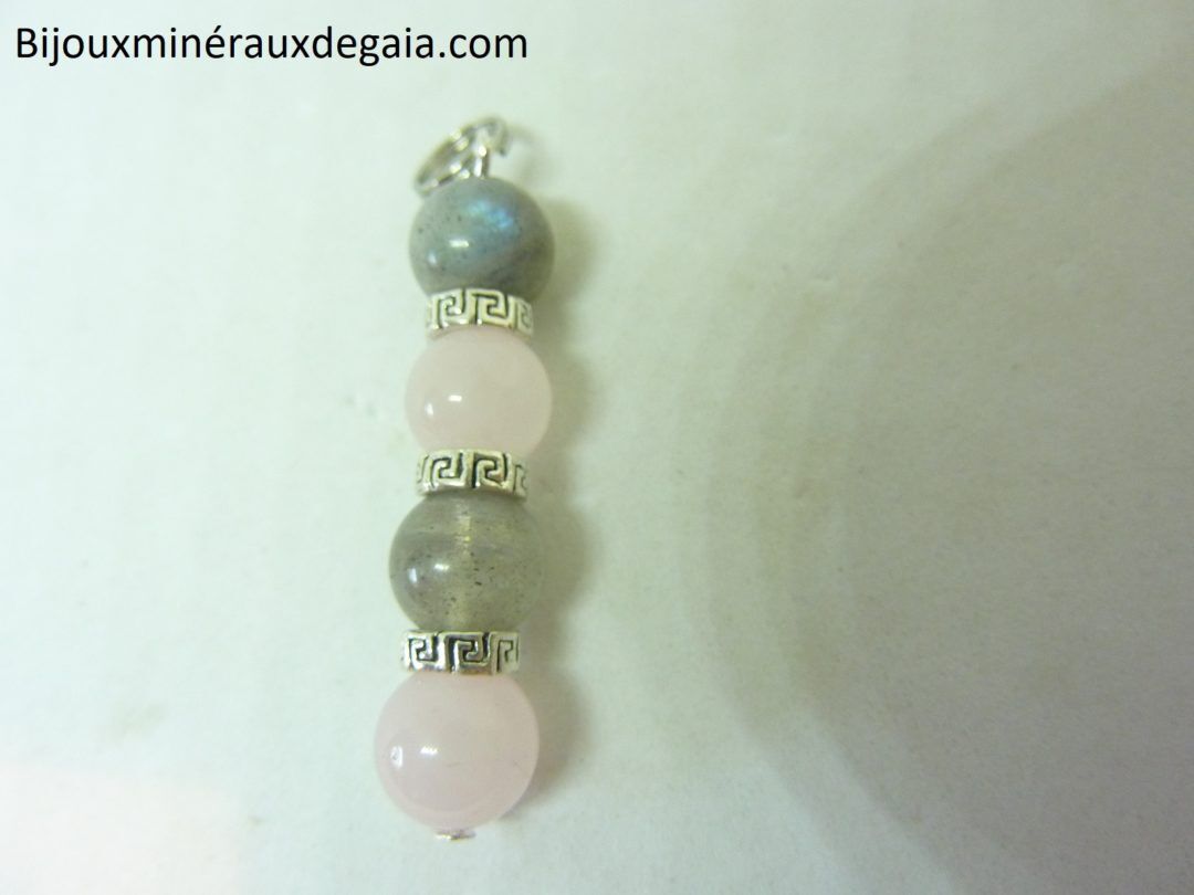 Pendentif Labradorite-quartz rose perles rondes 8 mm