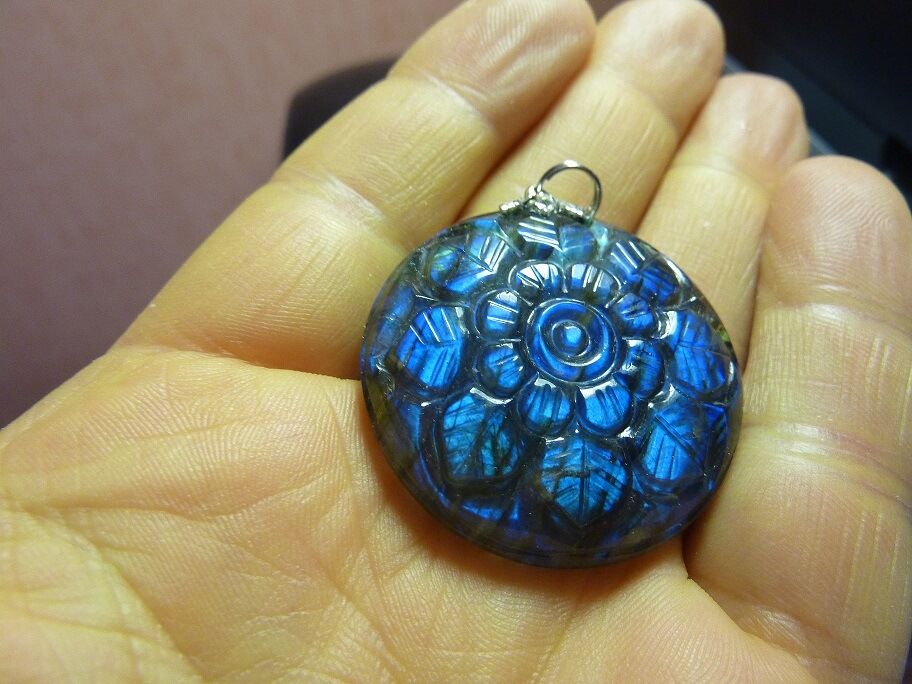 Dimensions pierre seule labradorite: 3,7 cm de diamètre x 0,9 cm d’épaisseur