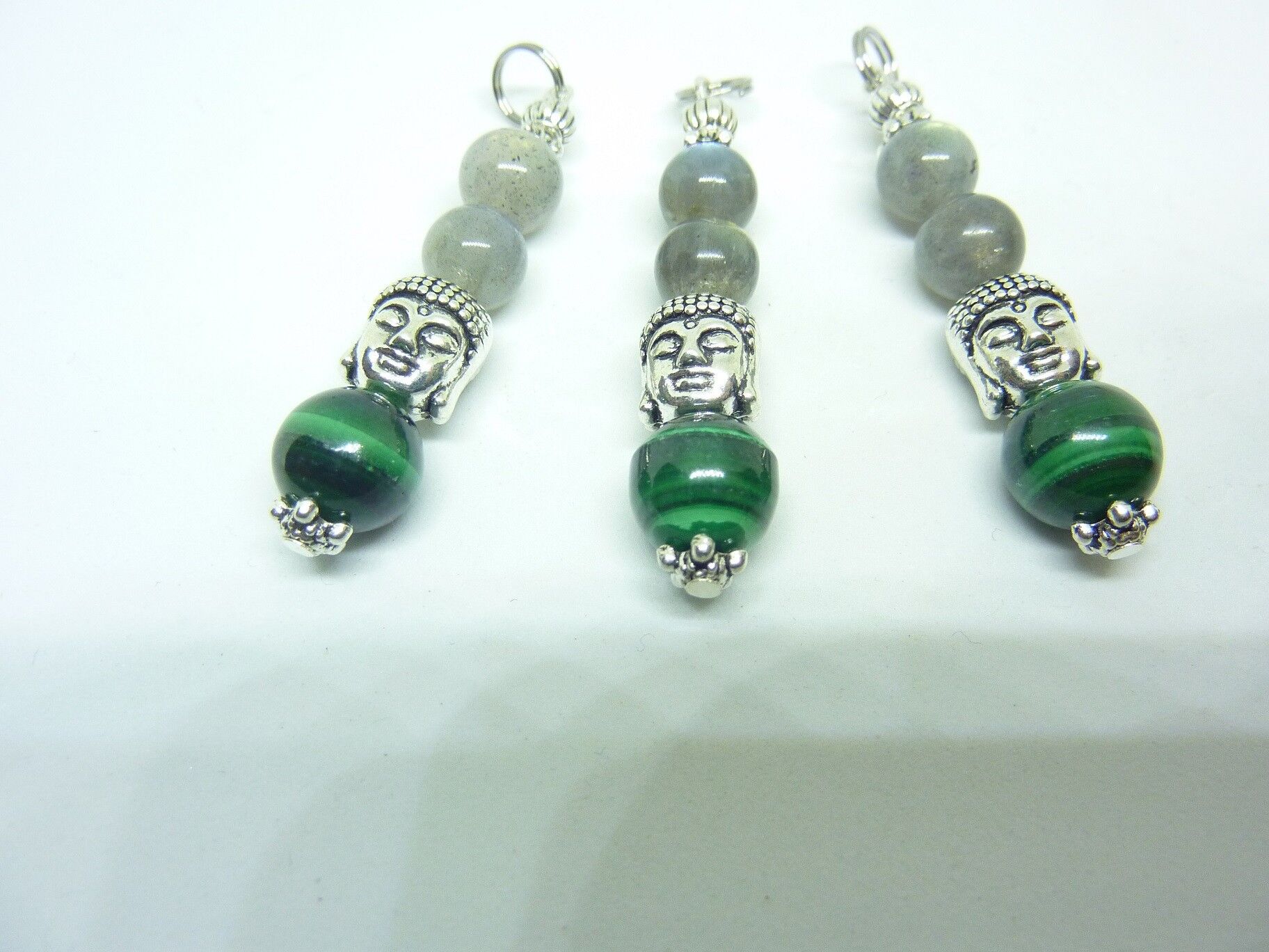 - PERLES RONDES DE MALACHITE ET LABRADORITE