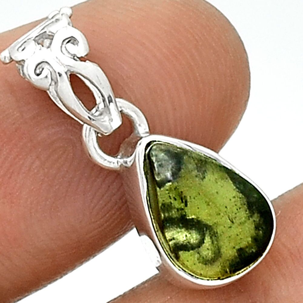 PENDENTIF MOLDAVITE MONTURE EN ARGENT 925. TRES RARE ! REF 3132
