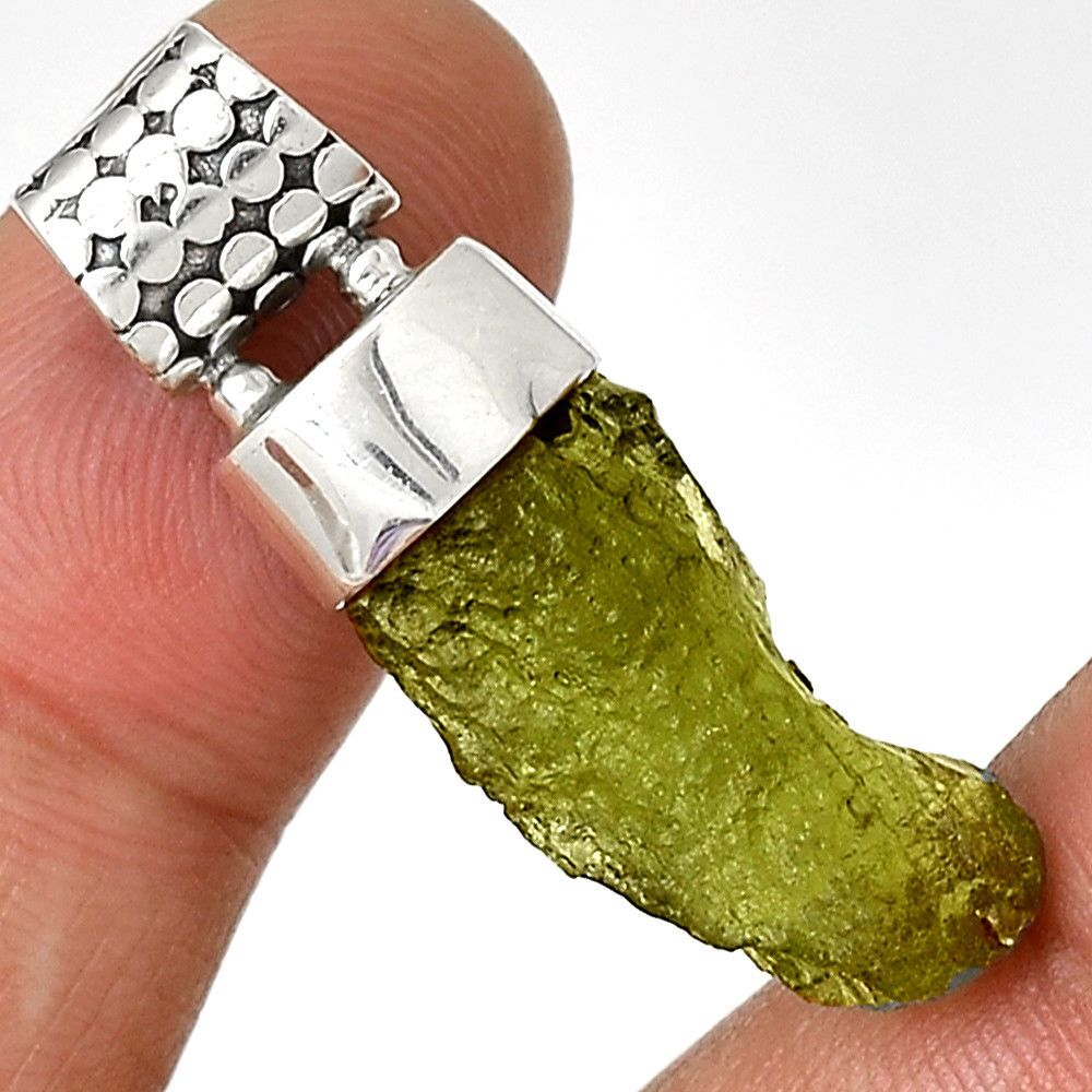 PENDENTIF MOLDAVITE MONTURE EN ARGENT 925. TRES RARE ! REF 5260