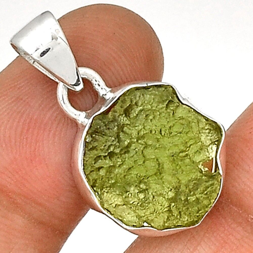 PENDENTIF MOLDAVITE MONTURE EN ARGENT 925. TRES RARE ! REF 6964