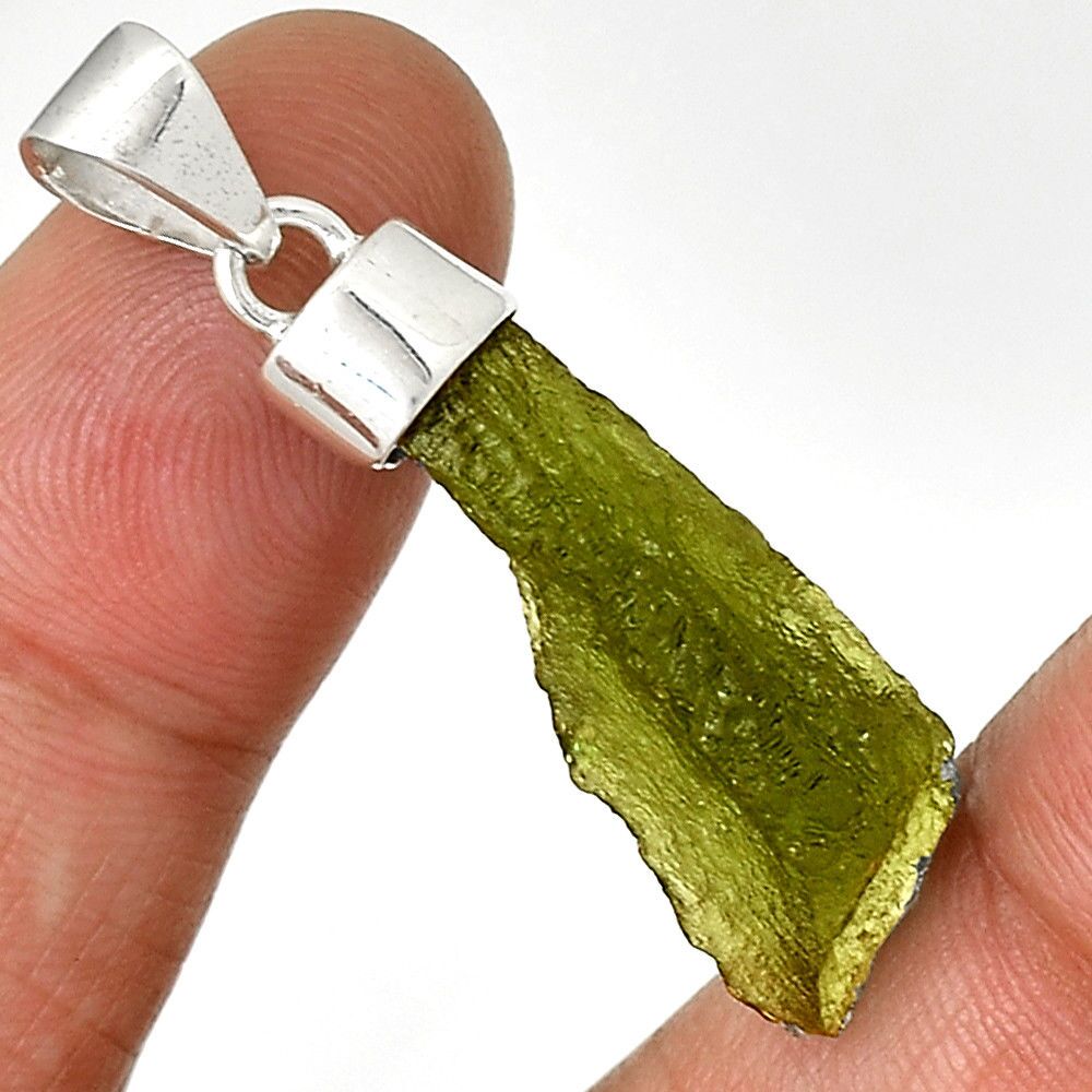 PENDENTIF MOLDAVITE MONTURE EN ARGENT 925. TRES RARE ! REF 6994