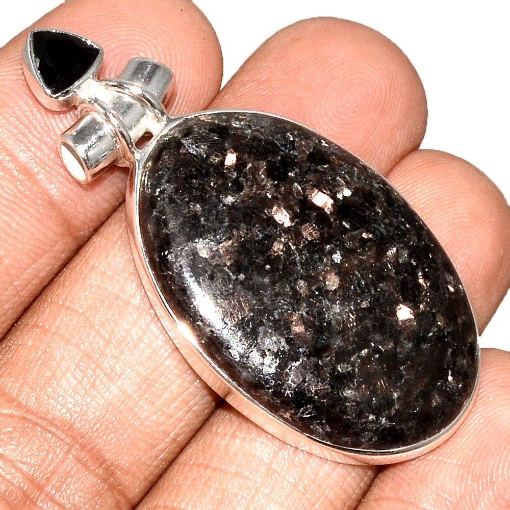 Pendentif Nuummite Véritable et spinelle noir monture argent 925 Rare ref 3817