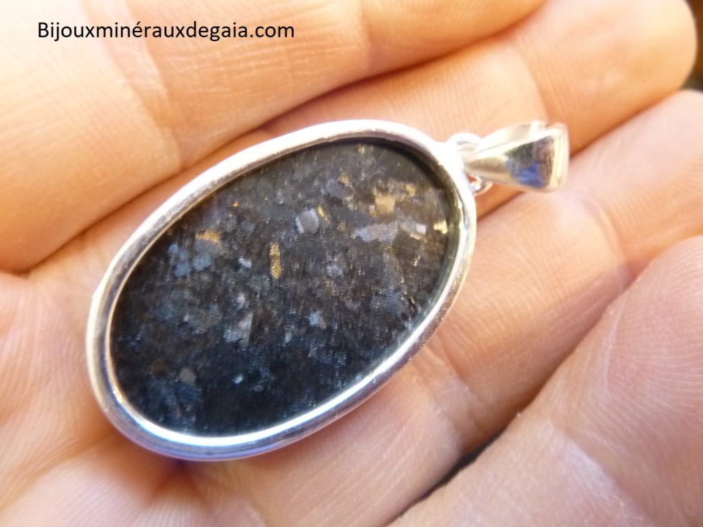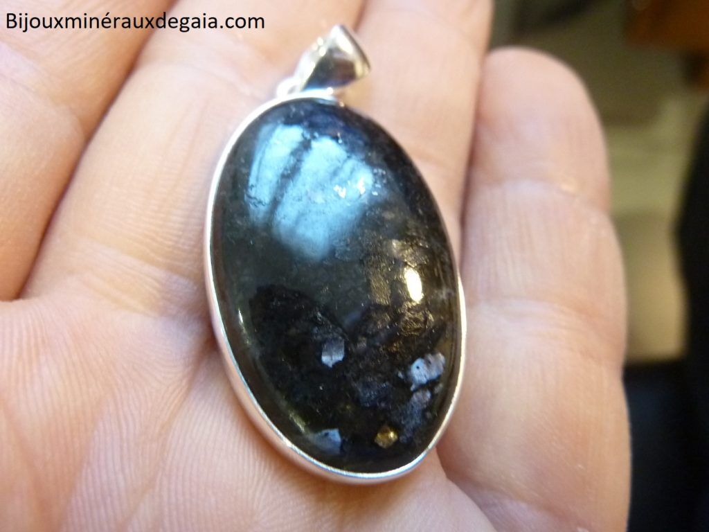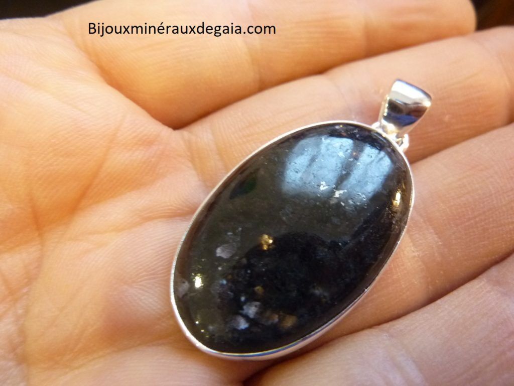 Pendentif Nuummite Véritable monture argent 925 Rare ref 4912