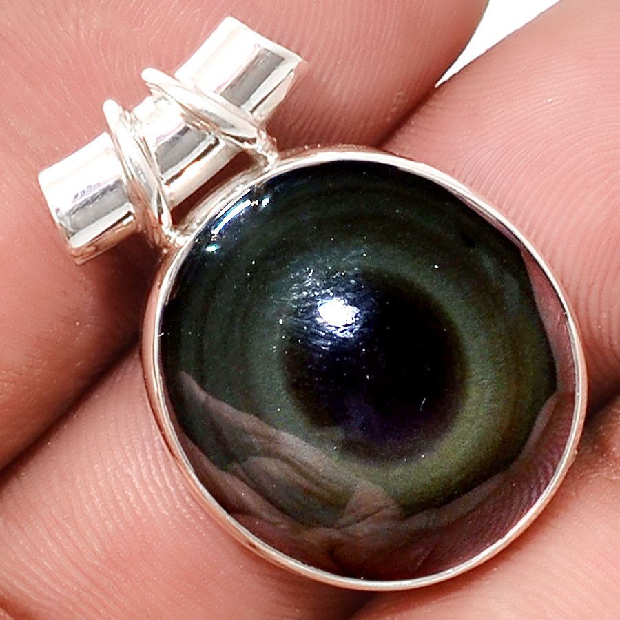 Pendentif obsidienne oeil celeste monture argent 925 Ref 0338